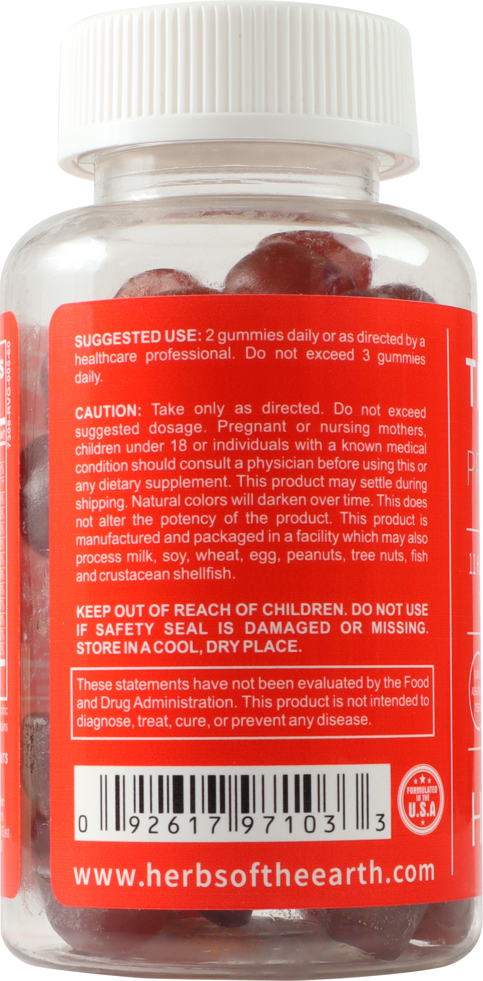 - Herbs of the Earth Promise - Our gummies contain no fillers , binders, and artificial ingredients. Our supplements are subjected to stringent third party testing and formulated in a GMP certified facility to ensure quality and efficacy.