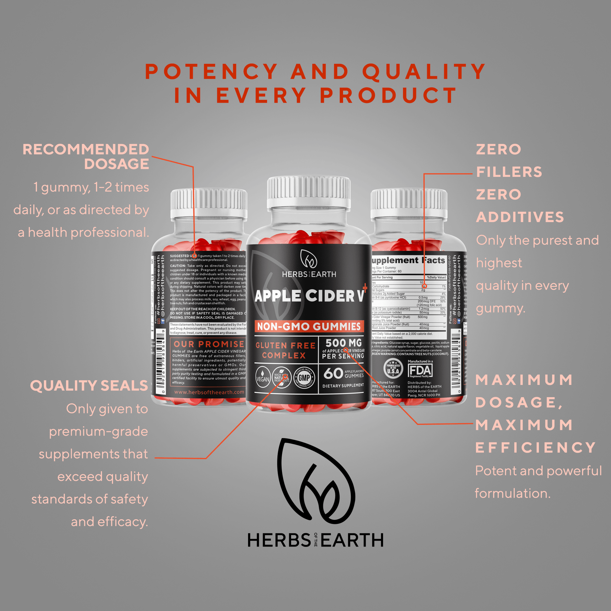 - FORMULATED BY PROFESSIONALS: Herbs of the Earth Apple Cider Vinegar NON-GMO Gummies were specially formulated with the highest quality ingredients to promote immune support and a healthy immune system.