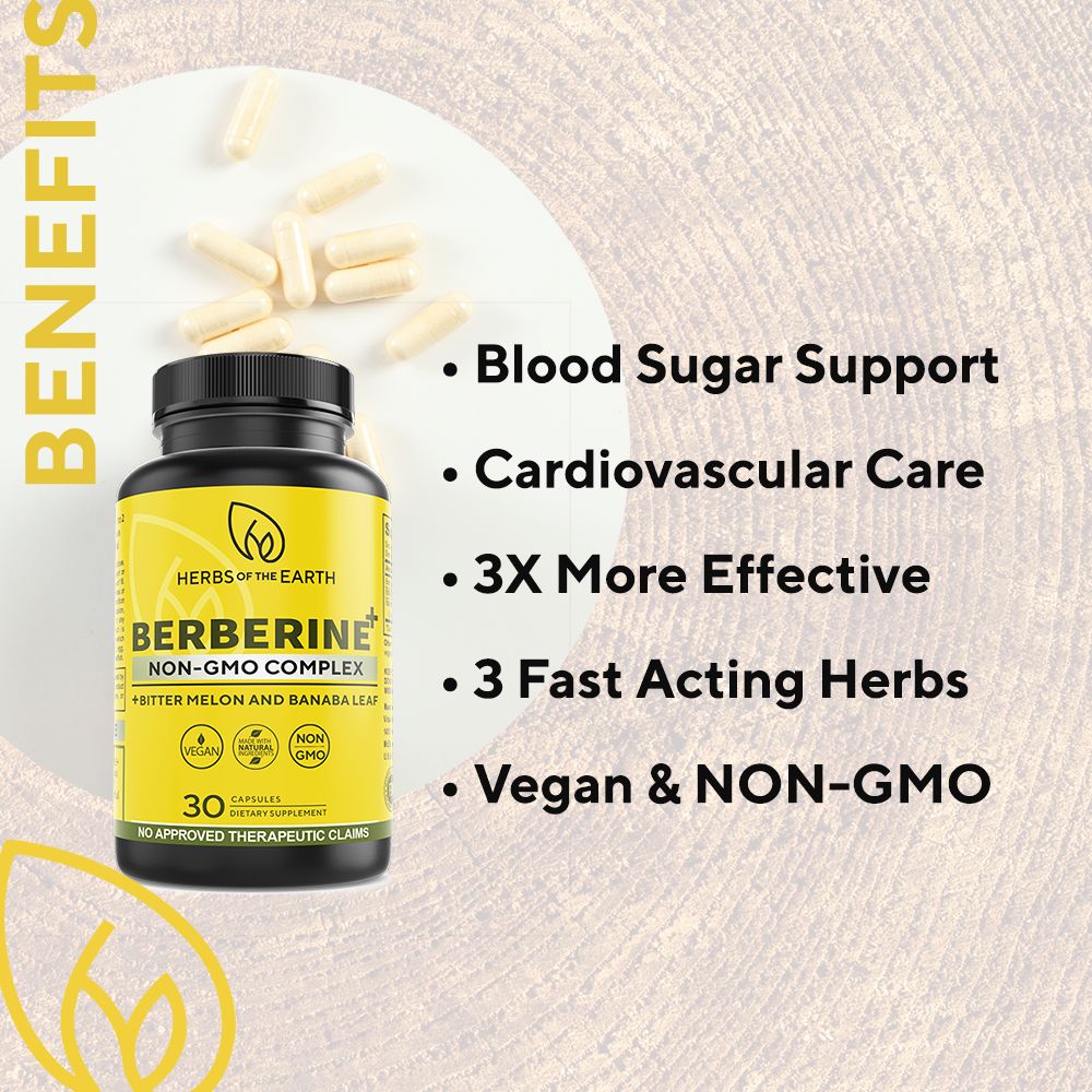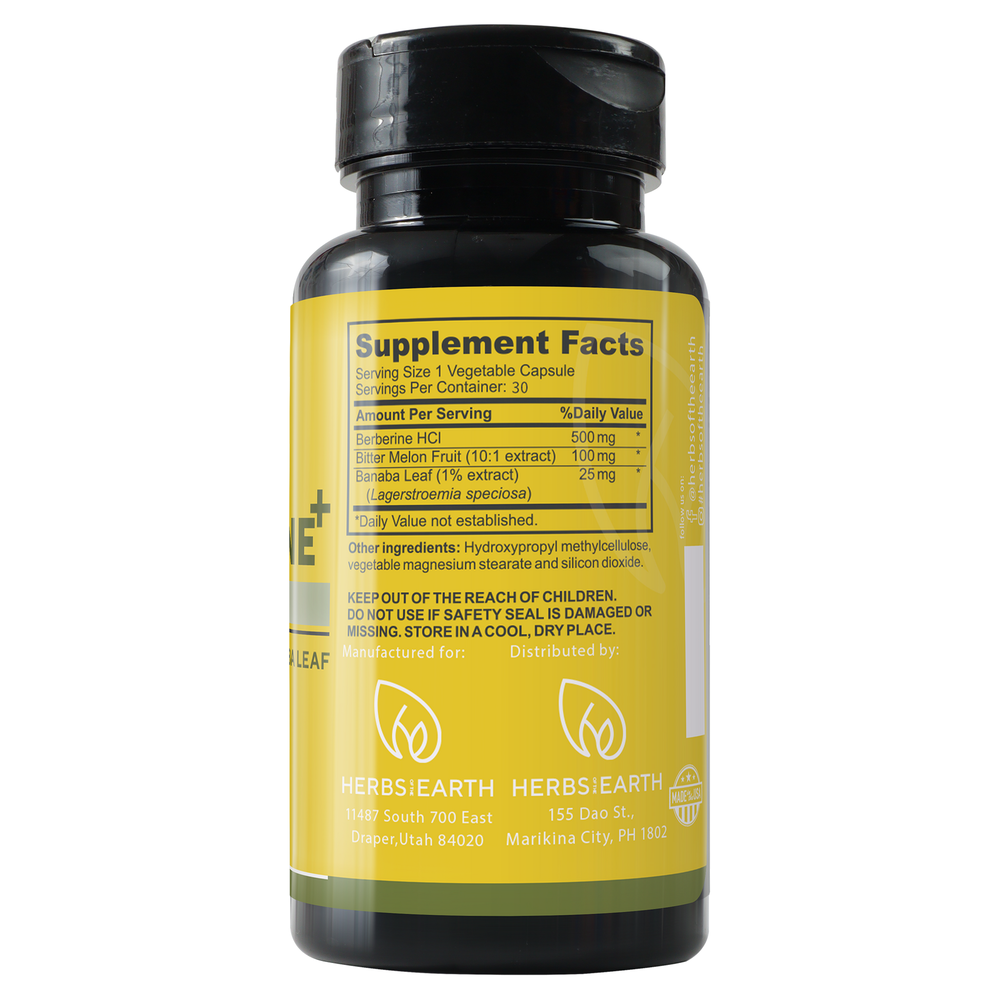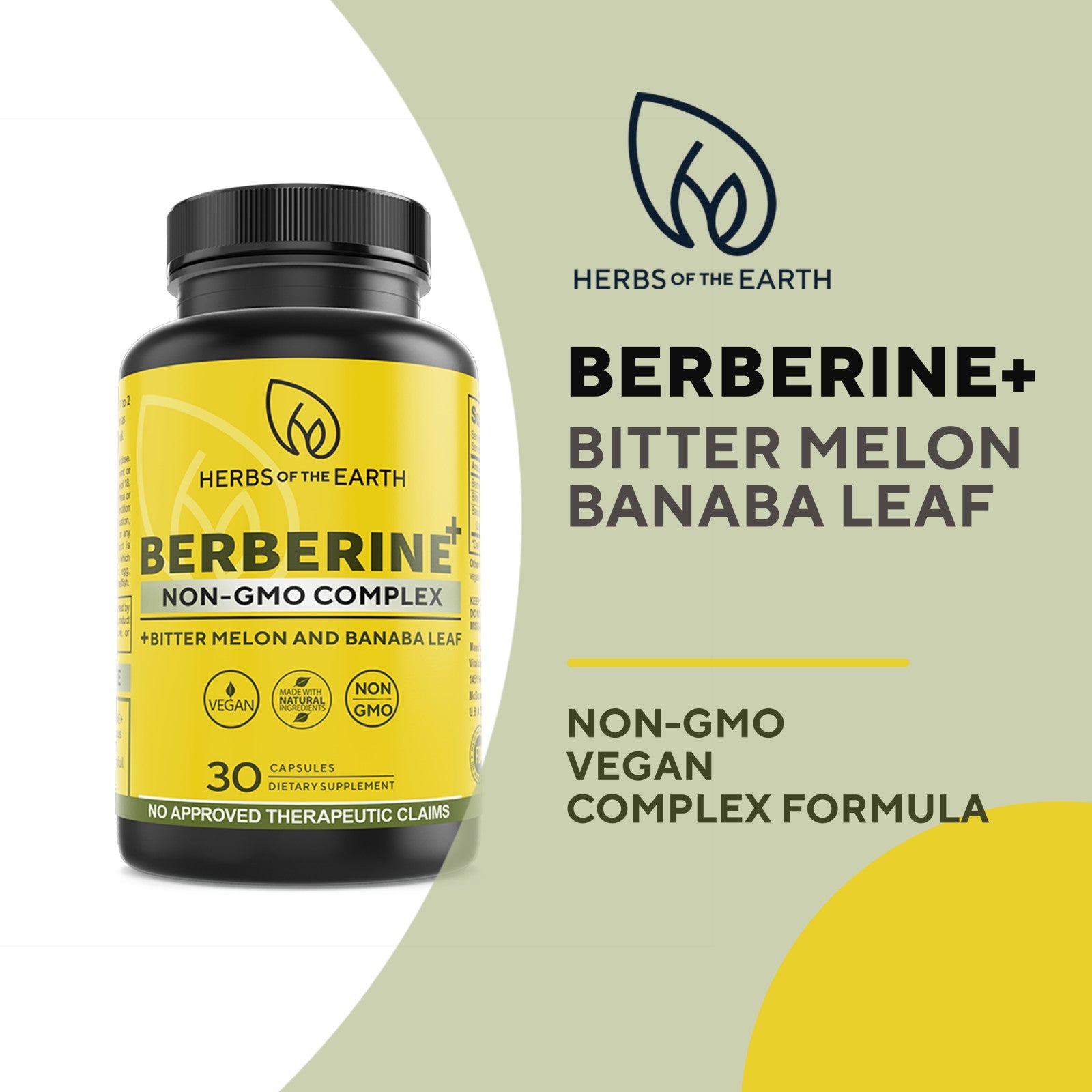 Herbs of the Earth High Strength Berberine + Bitter Melon & Banaba - Immune System Health - Cardiovascular & Gastrointestinal Support