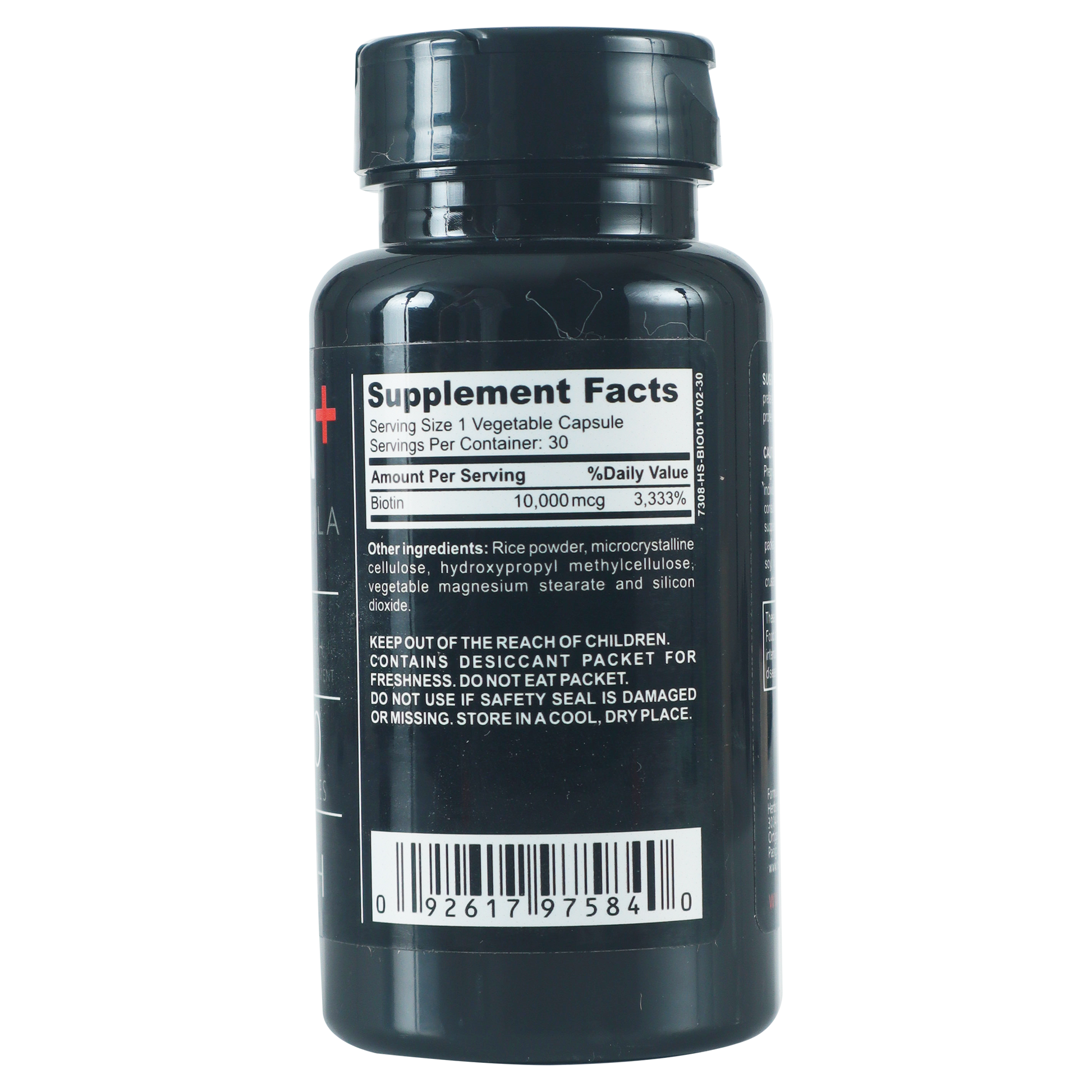 BIOTIN is formulated for maximum hair, skin and nail growth. Give your body a boost of b7 daily and keep your hair, skin and nails growing and glowing. 30 capsules per bottle.