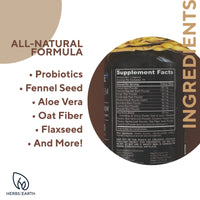 16 natural potent ingredients—aloe vera to cleanse the colon and psyllium husk & flaxseed powder for the old fecal matter to be moved out of the colon.