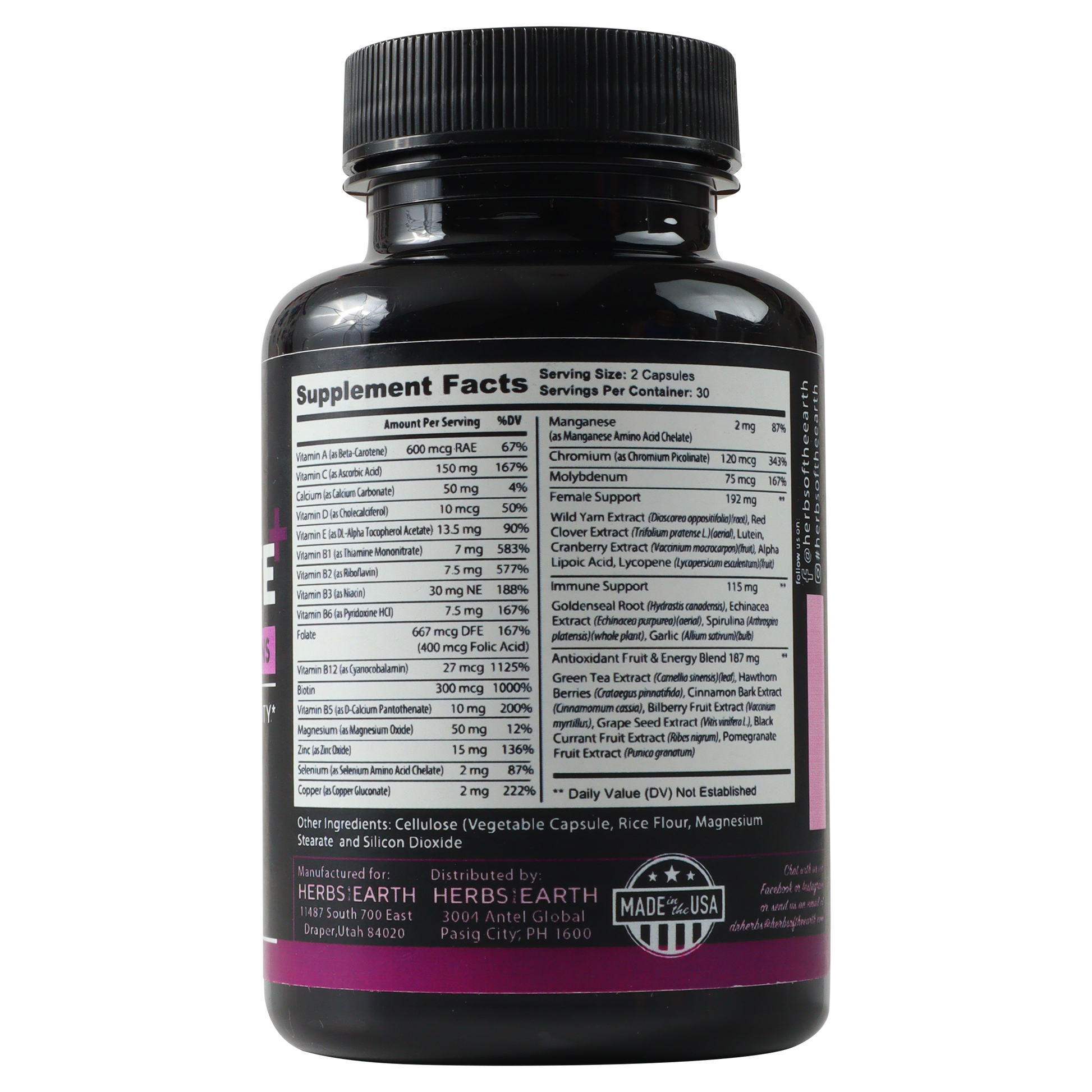- Formulated to empower women's health: With all the environmental factors and hormonal changes that can affect your health, you need all the nutritional support you can get. Our Women's Multivitamin comes with a Female Support Blend that promotes a healthier heart, brain, bones, skin, eyes, and urinary tract. This blend may also help ease menstrual cramps and menopausal symptoms, giving you the energy and time to focus on the people and things you love!