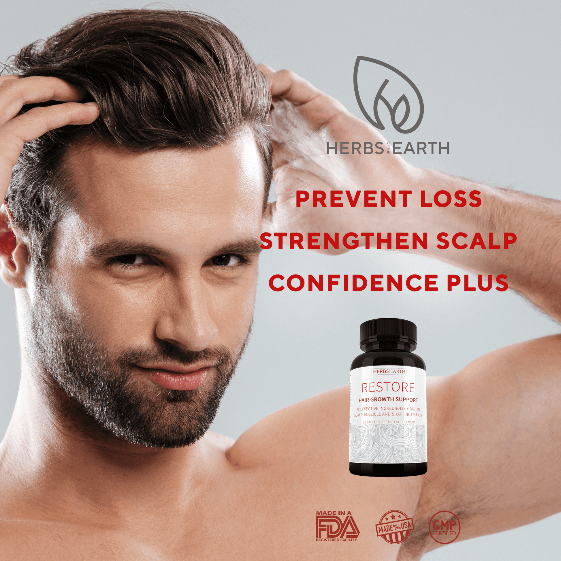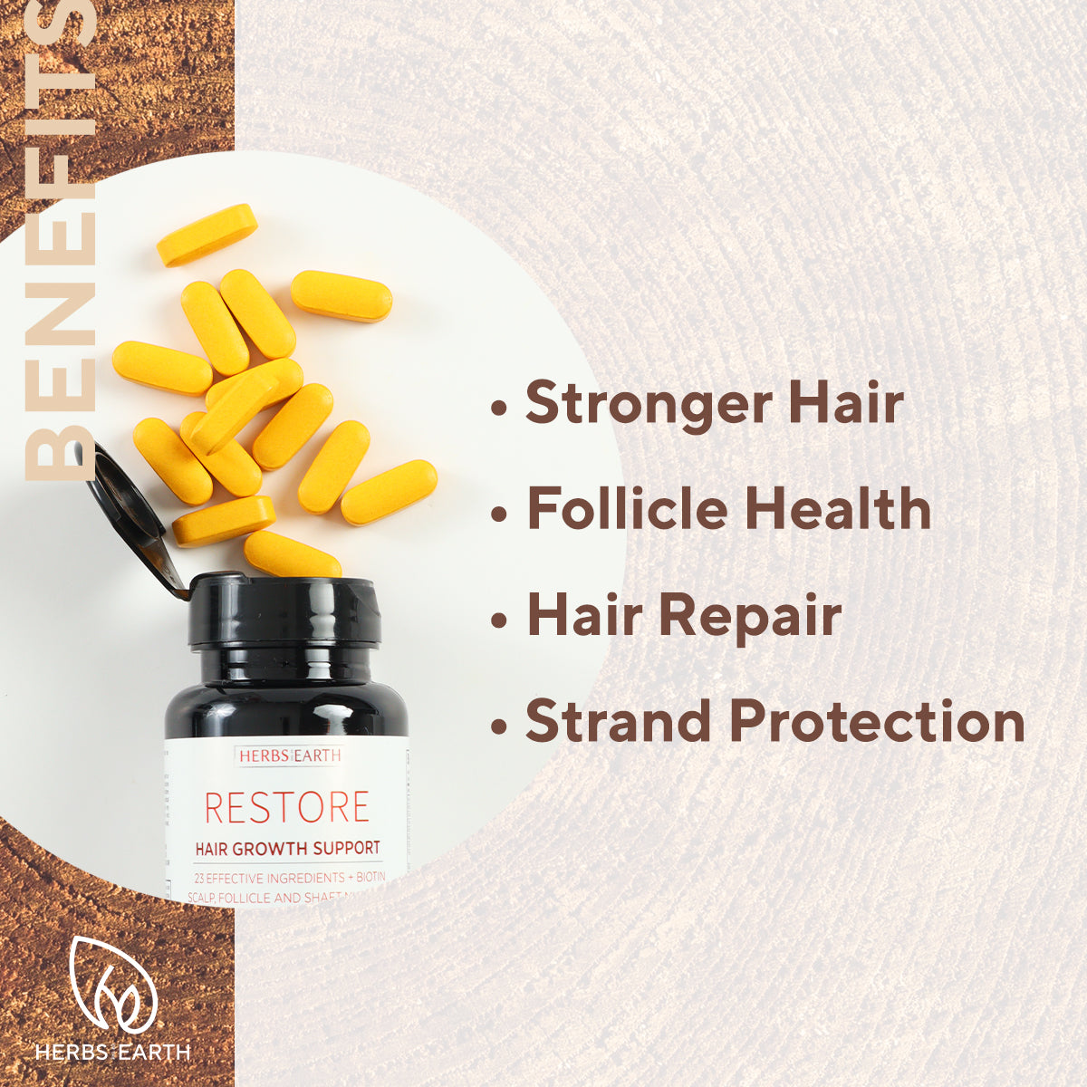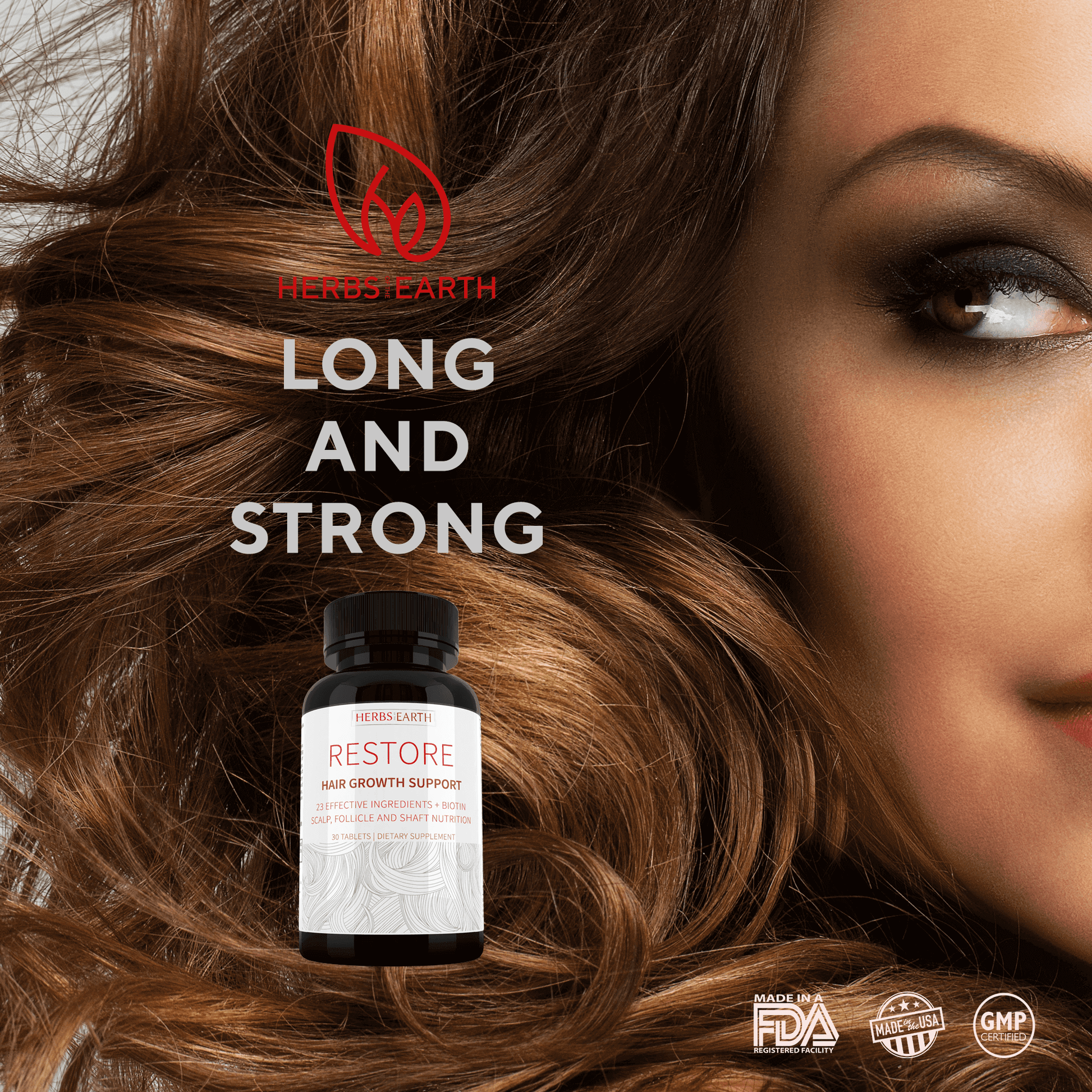 Hair Growth Support For Longer & Stronger Hair, Hair Growth Solution 23 All Natural Ingredients w Biotin, Silica & Inositol, 30 Potent Tablets, Made in the USA Herbs of the Earth