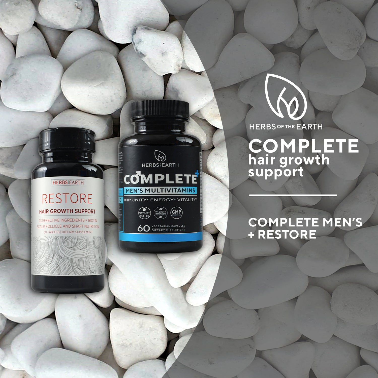 DADTASTIC COMPLETE HAIR GROWTH SUPPORT for DADS: Complete Multivitamin for Men - Supports Energy & Overall Male Health 1000mg (60 Capsules) & RESTORE 1000mg 30 Tablets Hair Growth Support For Longer & Stronger Hair from Herbs of the Earth
