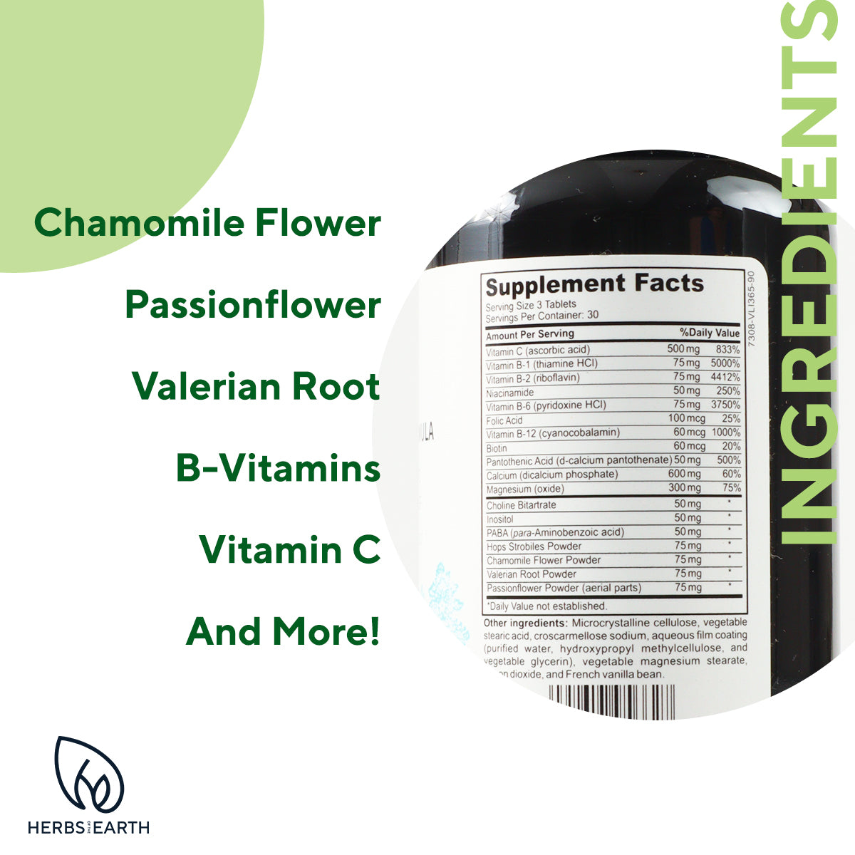 CONTAINS NATURAL HERBS AND HIGH-QUALITY, EFFECTIVE INGREDIENTS: Such as BIOTIN, B-complex vitamins, Vitamin C, Inositol, PABA, Hops Flower Powder, Chamomile Passion flower Powder, and Valerian Root Powder, which are crucial for keeping your brain and nervous system healthy