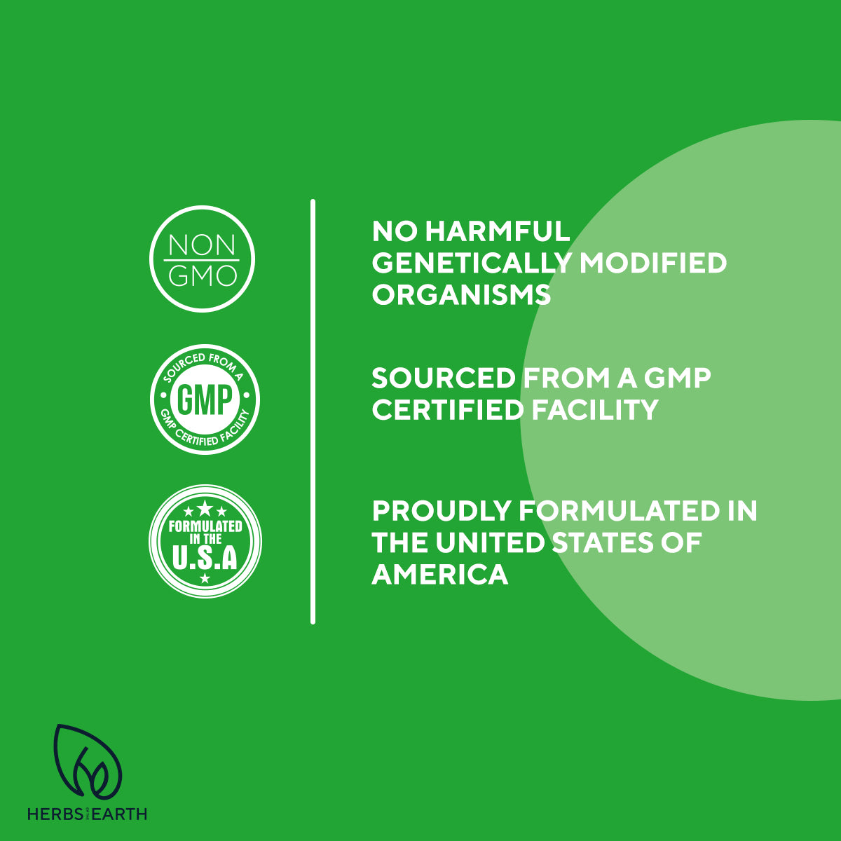 OUR PROMISE TO YOU: Herbs of the Earth products are manufactured in the USA in an FDA-approved lab meeting GMP standards.