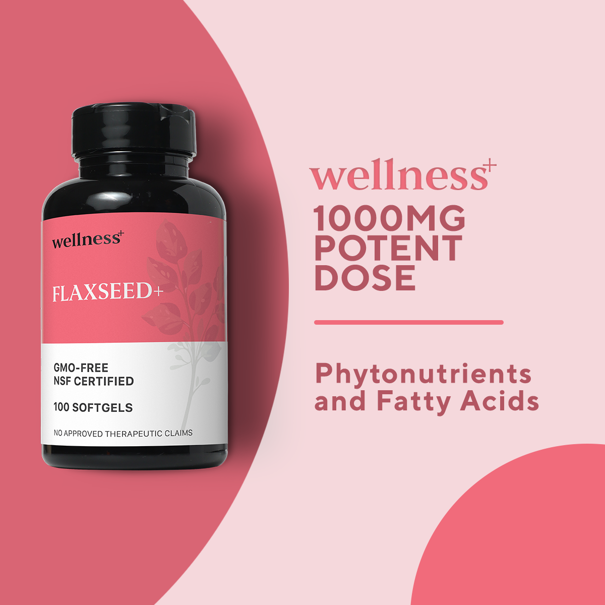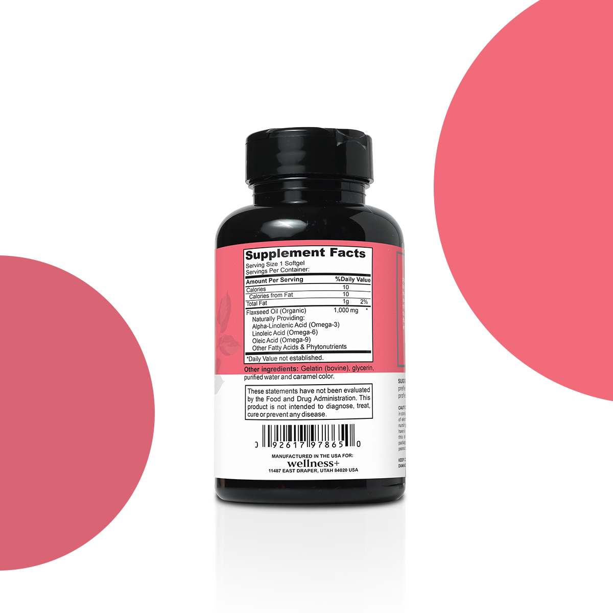 Wellness+ Flaxseed Oil 1000 mg 100 softgels - Health Heart, Fertility, Weight Loss Aid, Anti - Cancer, Ease Menopause, Reduce Inflammation, Healthy Babies 100 Soft gels, For Men and Women