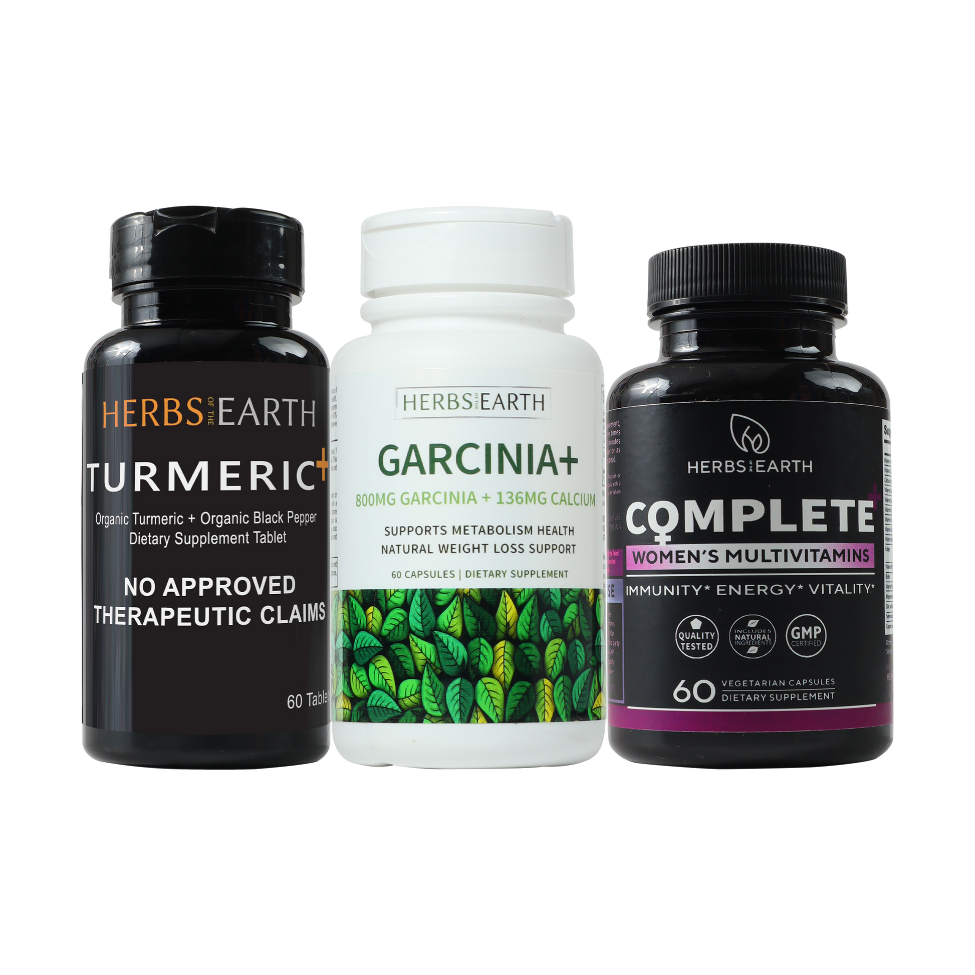 Golden Years Bundle Turmeric 30s, Complete Women's Multivitamin 60s and Garcinia 800mg 60s from Herbs of the Earth