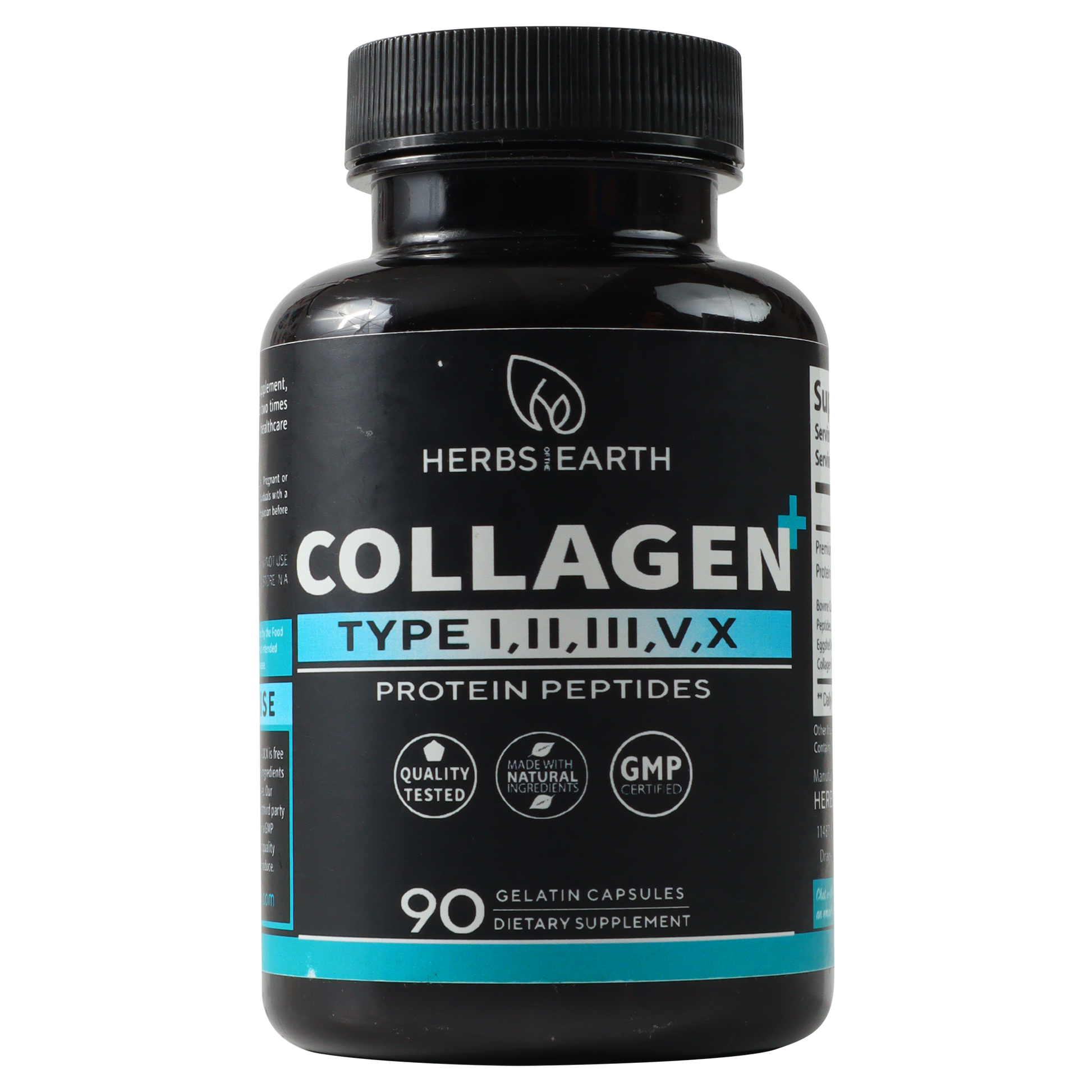 Herbs of the Earth Collagen Type I, II, III, V, & X provides proprietary collagen peptide pills that are formulated with a unique blend of 100% grass-fed beef, Chicken Bone Broth, Hydrolyzed Collagen Peptides from Wild Fish, and Eggshell, including Types I, II, III, V, & X.