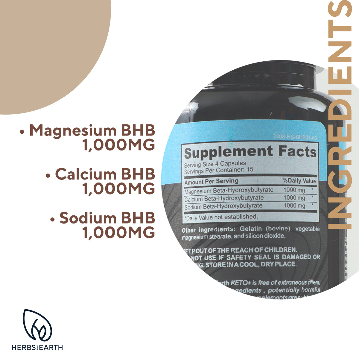 • YOUR SOLUTION -SCIENTIFICALLY PROVEN KETOSIS PILLS - These sodium minerals help minimize your carbohydrate absorption, use fat for fuel, increase satiety, kickstart your metabolism, and be in total focus with absolute natural energy . Each Herbs of the EArth Keto+ diet pill is made with the purest BHB powder, 100% vegetarian and precisely formulated with premium goBHB salts at a proven dose to advance your body into ketosis.