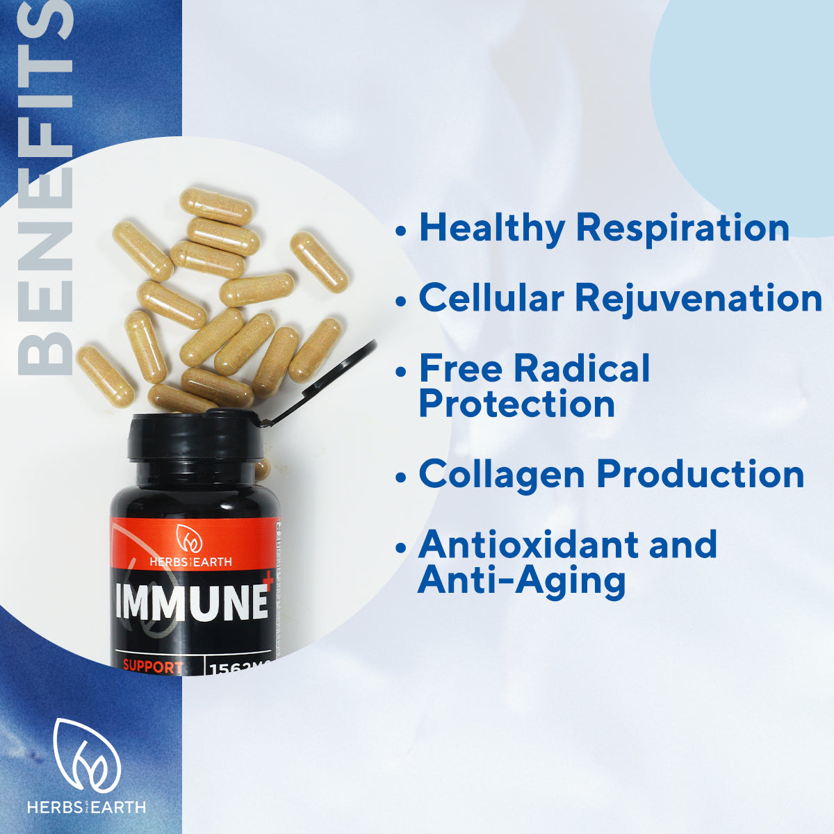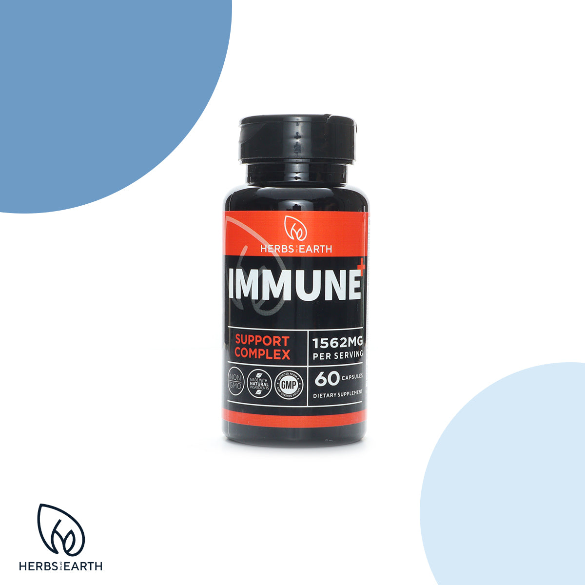 COMPREHENSIVE IMMUNE SUPPORT SUPPLEMENT leading Herbs of the Earth Immune+with 25 All Natural Ingredients Supports Stronger Immune Defense Mechanism of the Body.
