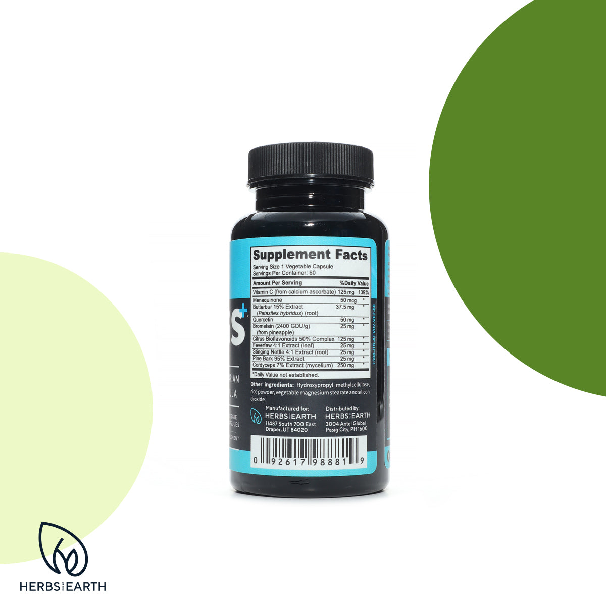 - Lungs+ Respiratory Support Lung Cleanse & Lung Detox - Asthma Relief, COPD, Allergy Rhinitis, Breathing, Helps to Quit Smoking, Vit C, Menaquinone, Butterbur, Quercetin, Bromelain, Feverfew, Stinging Nettle, Cordyceps, 60 Caps from Herbs of the Earth