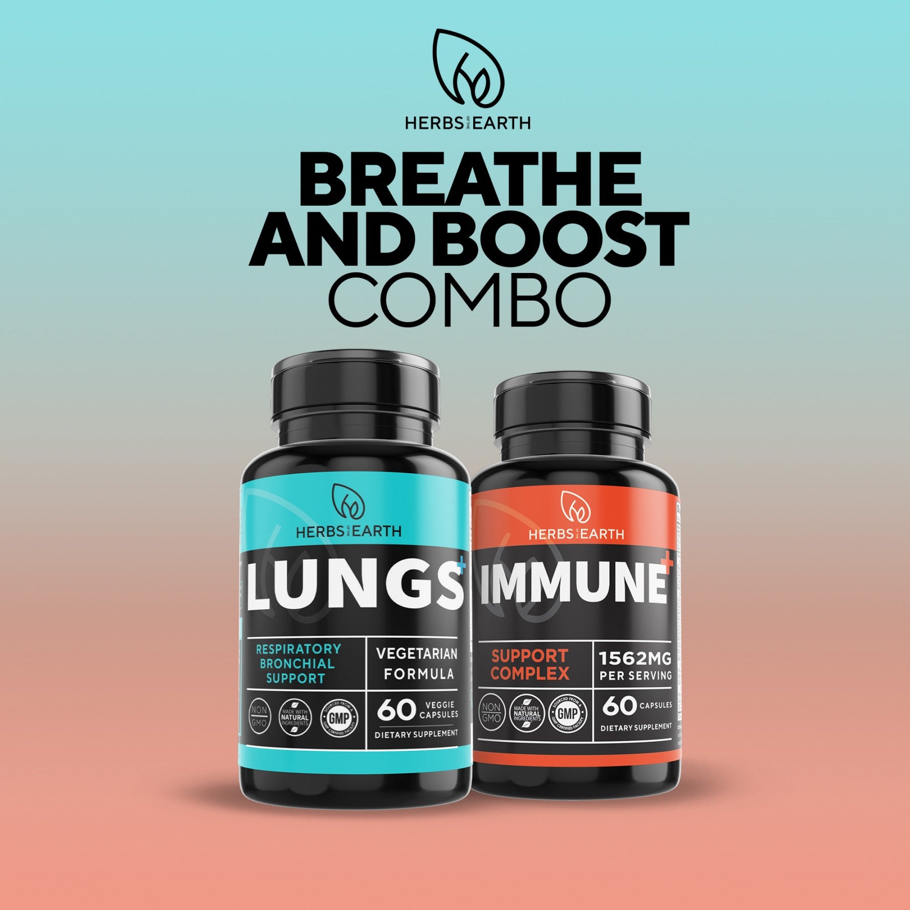 Breathe and Boost Bundle - LUNGS Respiratory Support 60s + IMMUNE Support 60s from Herbs of the Earth