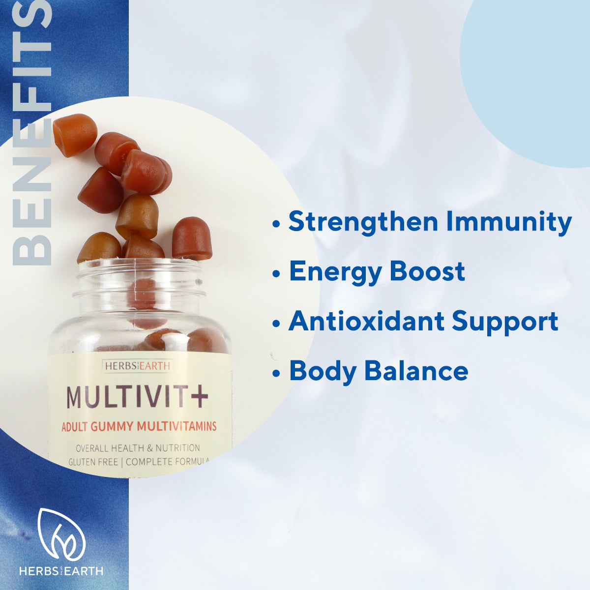 MultiVit+ provide a perfect combination of essential vitamins,minerals and natural fruit flavors in delicious gummies. This complete multivitamin provides a great-tasting and convenient alternative to traditional, hard-to-swallow pills.