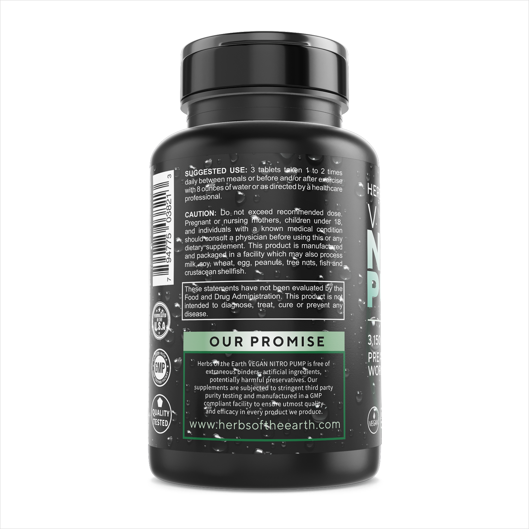 >Bottled in the USA: Each bottle of our VEGAN Nitro Pump is proudly formulated and bottled in the USA following strict cGMP guidelines; Reviewed by third party lab for quality and purity.
