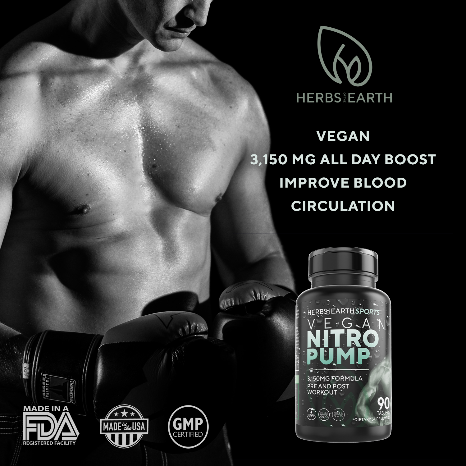 - VEGAN Nitro PUMP Pre and Post Workout Energy and Muscle Builder helps deliver oxygen and nutrients to the body through enhanced circulation (which also assists in faster recovery time) and increases your natural energy at the cellular level
