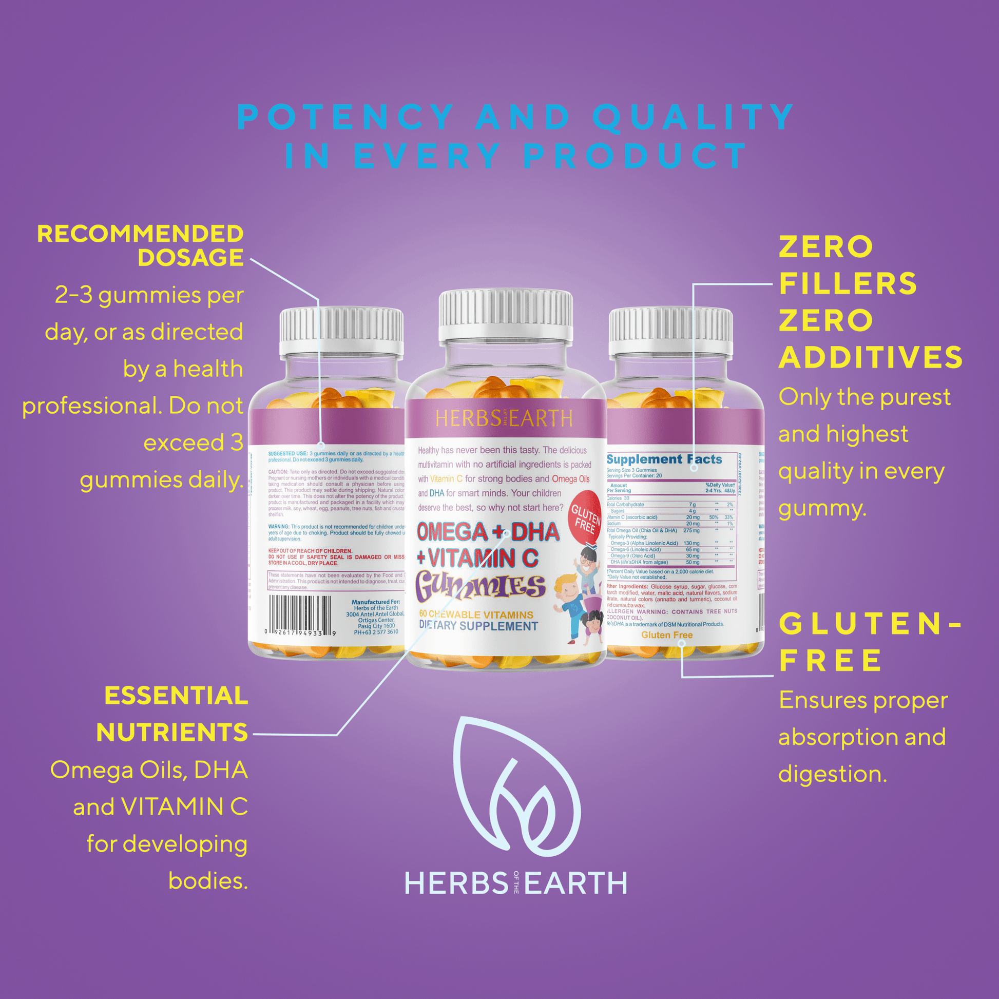 Complete OMEGA 3,6,9 to WARD OFF diseases and infection- With DHA for HEALTHY VISION and BRAIN DEVELOPMENT- Contains Vitamin C for STRONG BONES, HEALTHY TEETH and GUMS- With CHIA SEEDS for ENERGY and BETTER DIGESTION- Gluten Free, Made in the USA in an FDA Approved GMP Facility with strict quality control to ensure premium quality and effectivity.