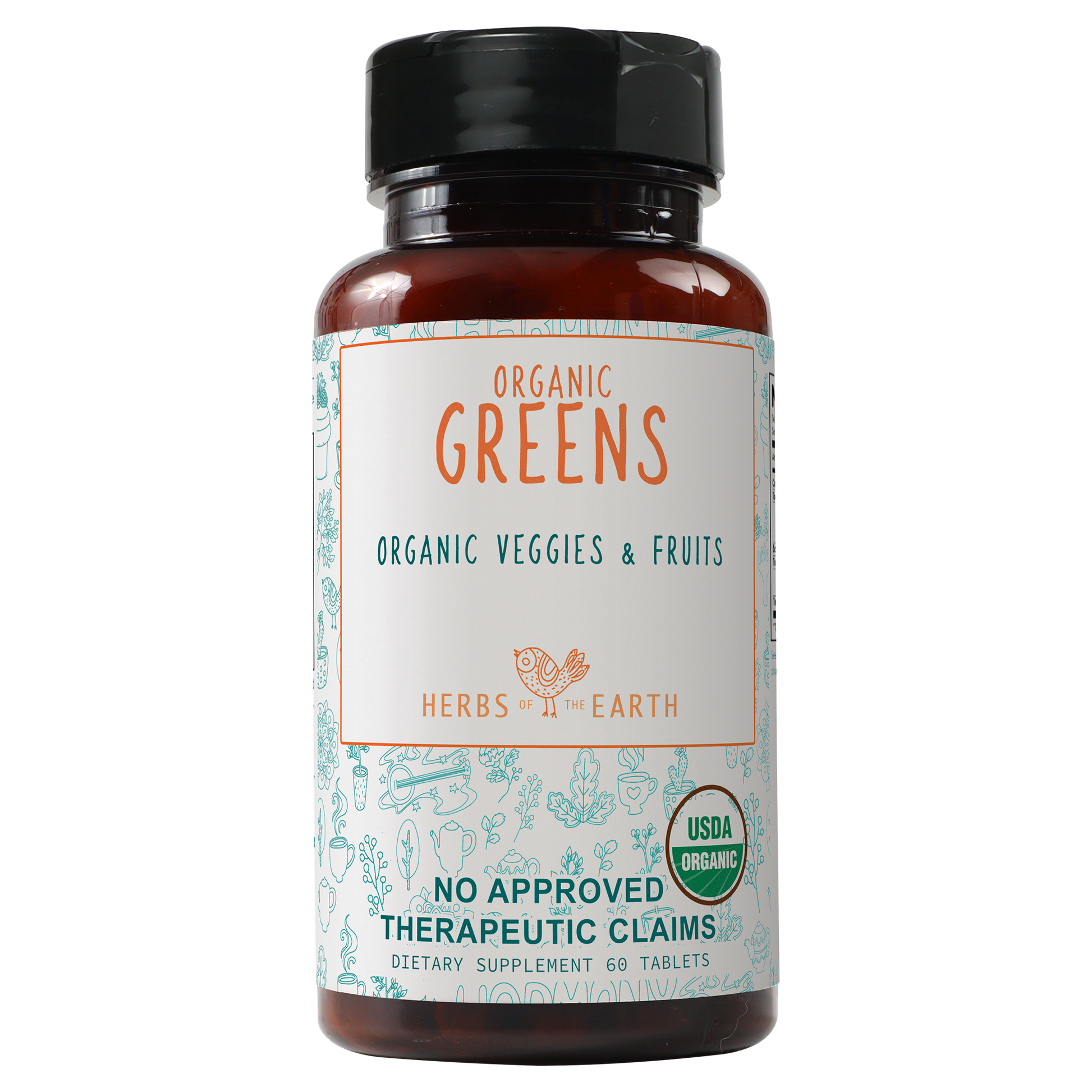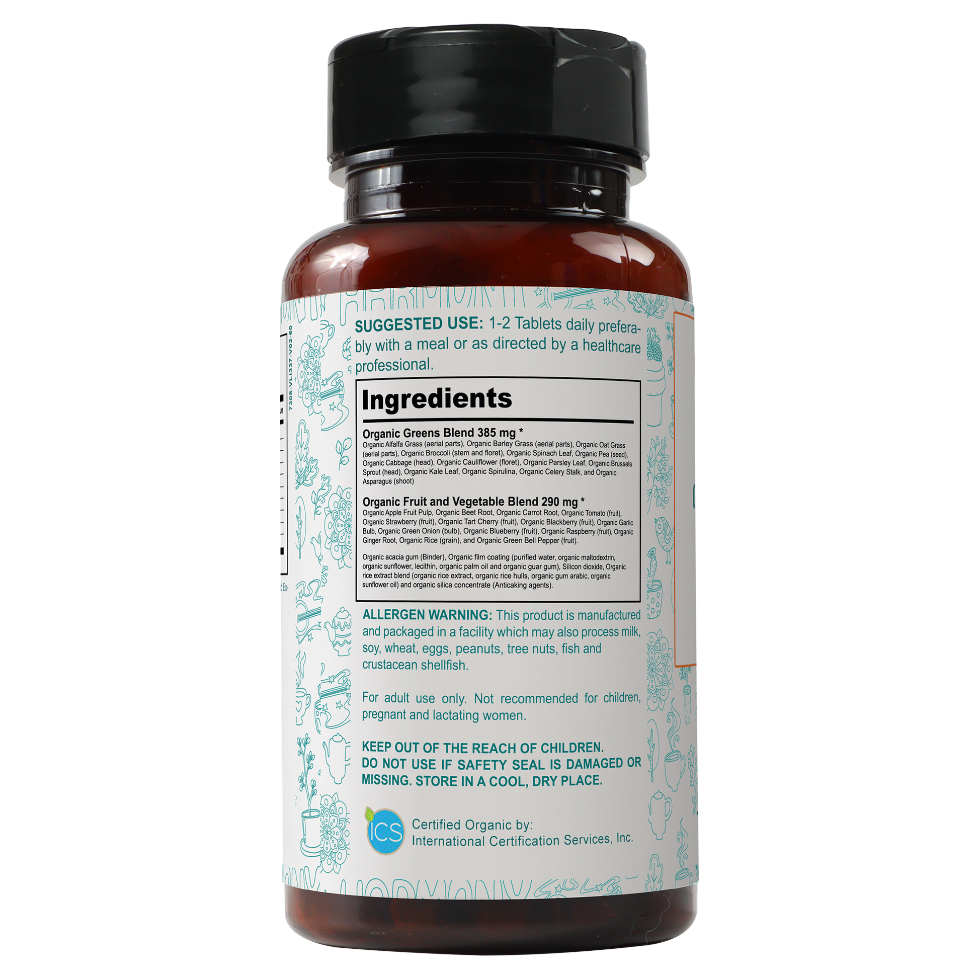 Organic Greens and Fruits Superfood & Multivitamins , Non-GMO, Gluten Free, Vegan Friendly, 60 Tablets, USDA Organic Certified