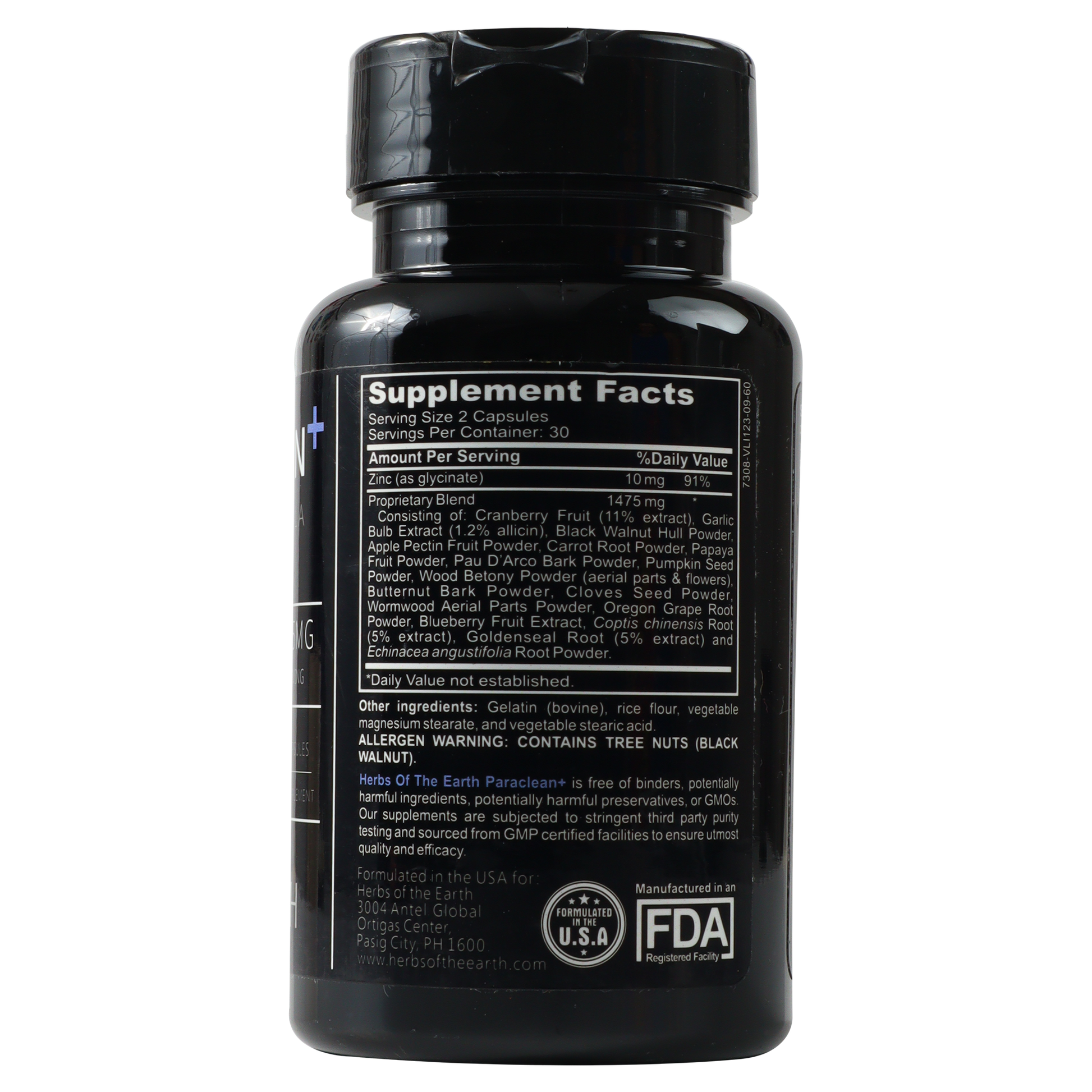 Pure, healthy and natural, our formula is packed with superior herbs you can trust. We make absolutely sure that our ingredients come from only the most exceptional sources. Our herbs are: Cranberry Fruit (11% extract), Garlic Bulb Extract (1.2% allicin), Black Walnut Hull Powder, Apple Pectin Fruit Powder, Carrot Root Powder, Papaya Fruit Powder, Pau D' Arco Bark Powder, Pumpkin Seed Powder, Wood Betony Powder (aerial parts & flowers), Butternut Bark Powder, Cloves Seed Powder, Wormwood Herb Powder, Oregon Grape Root Powder, Blueberry Leaf (20% extract), Coptis chinensis Root (5% extract), Goldenseal Root (5% extract) and Echinacea Angustifolia Root Powder.*