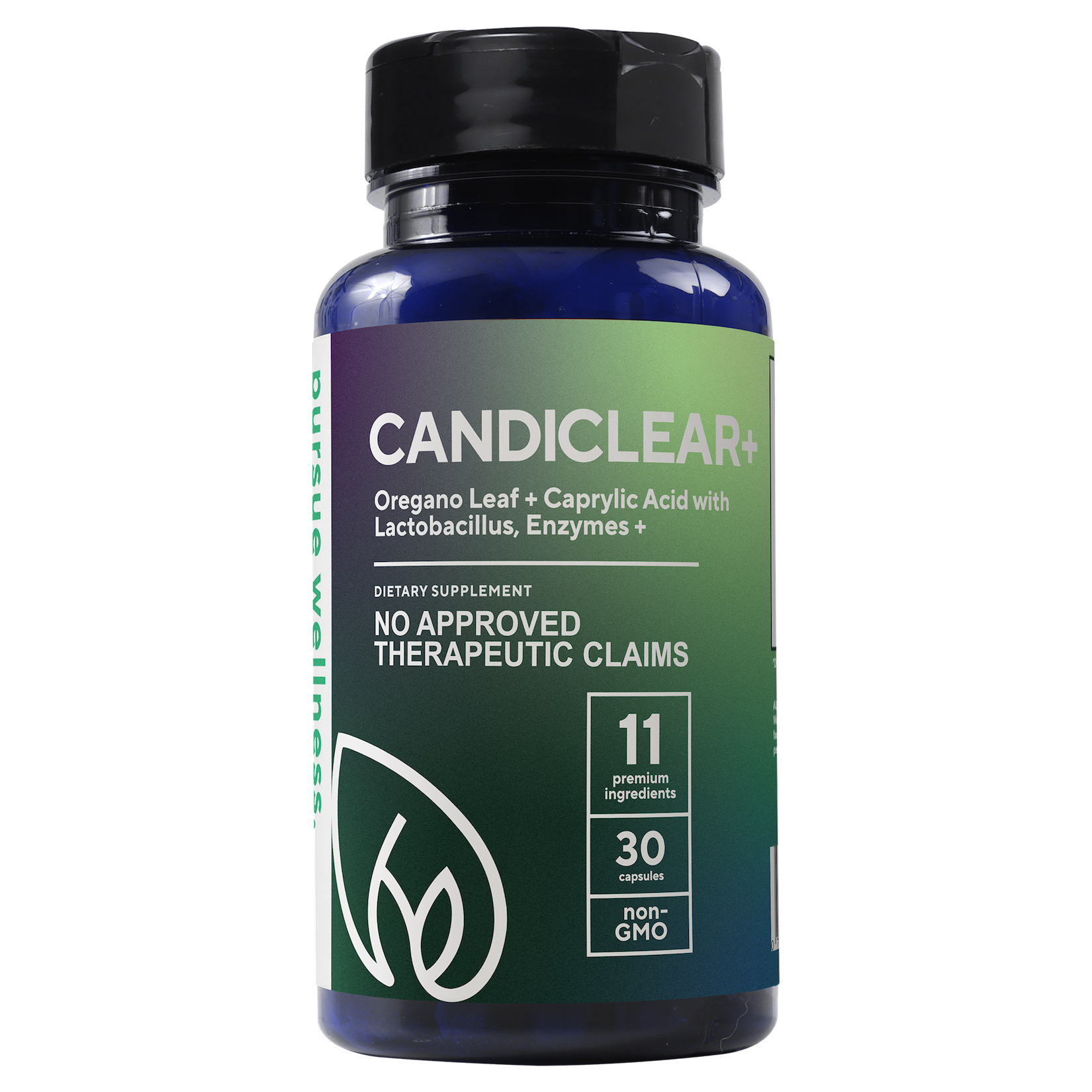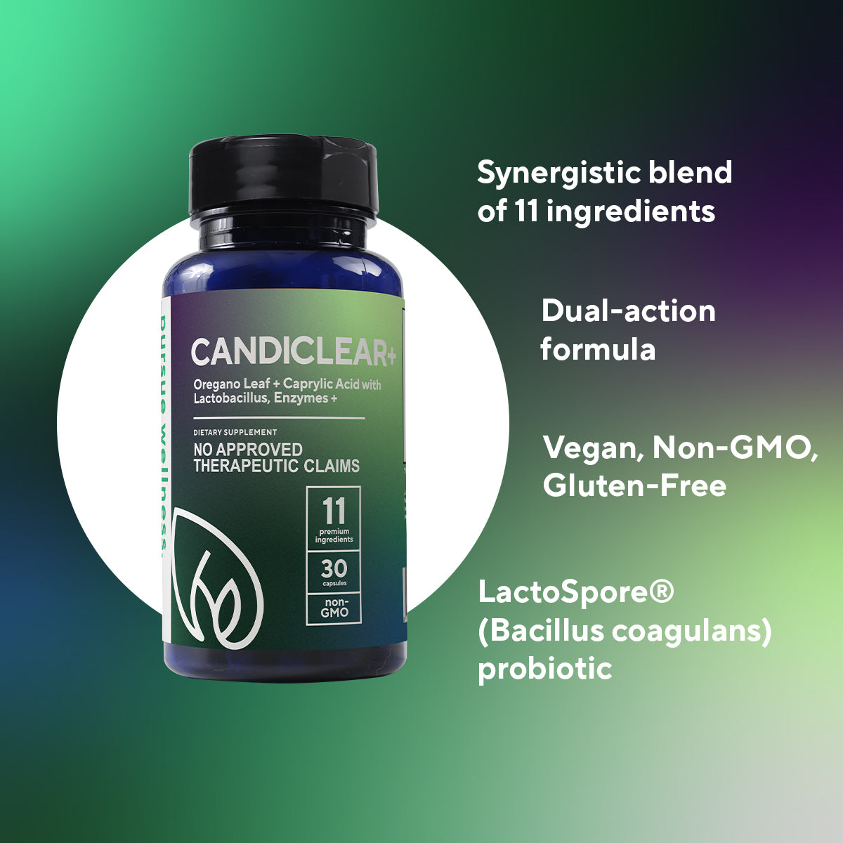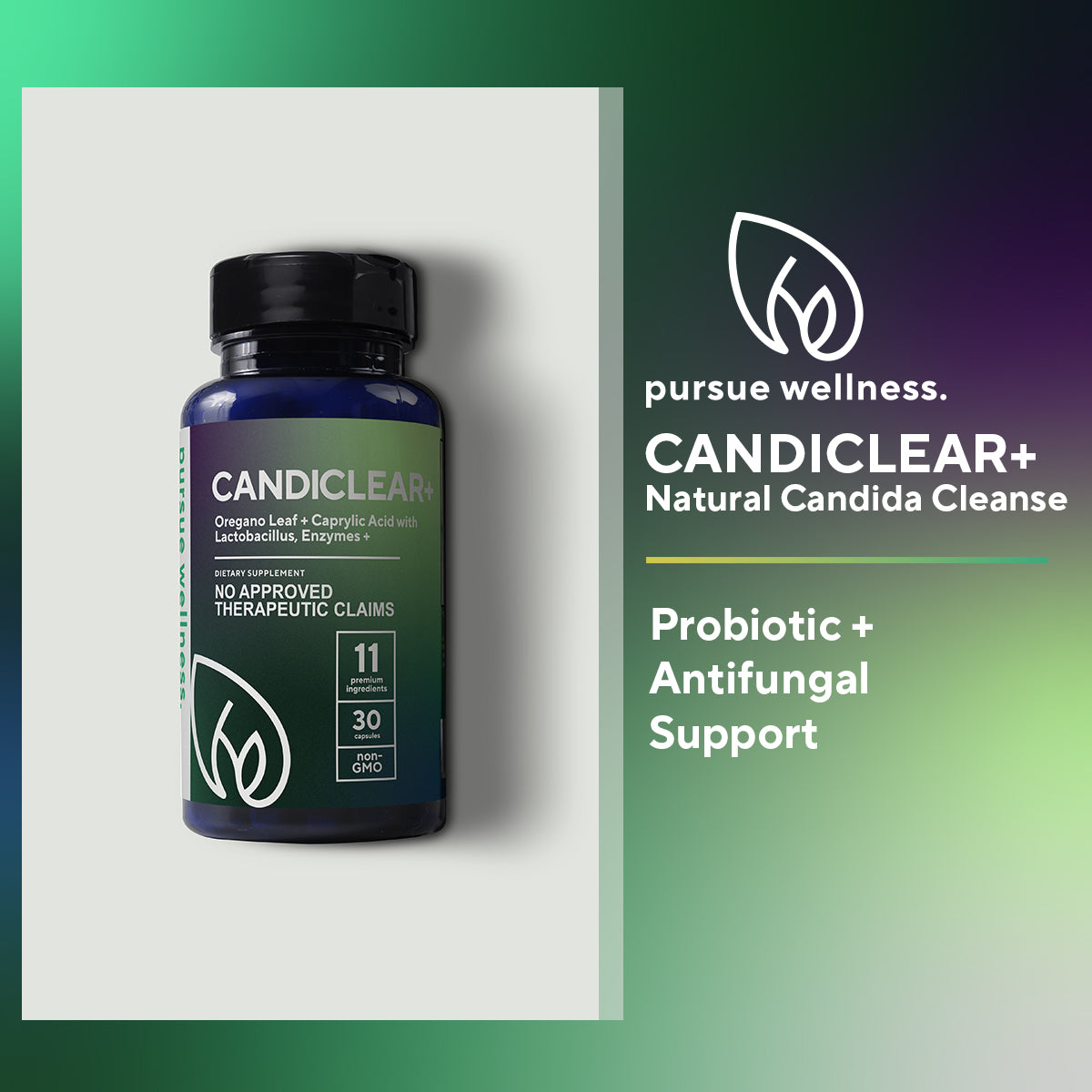 Pursue Wellness CandiClear+ – Natural Candida Cleanse & Gut Flora Support with Oregano, Caprylic Acid, LactoSpore®, Enzymes & Herbal Extracts – Fights Thrush, Yeast & Restores Gut Balance – Vegan, USA Made, 30 Caps (0794775038855)