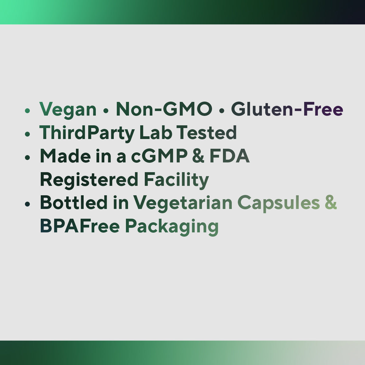 ● Bottled in Vegetarian Capsules & BPA‑Free Packaging
