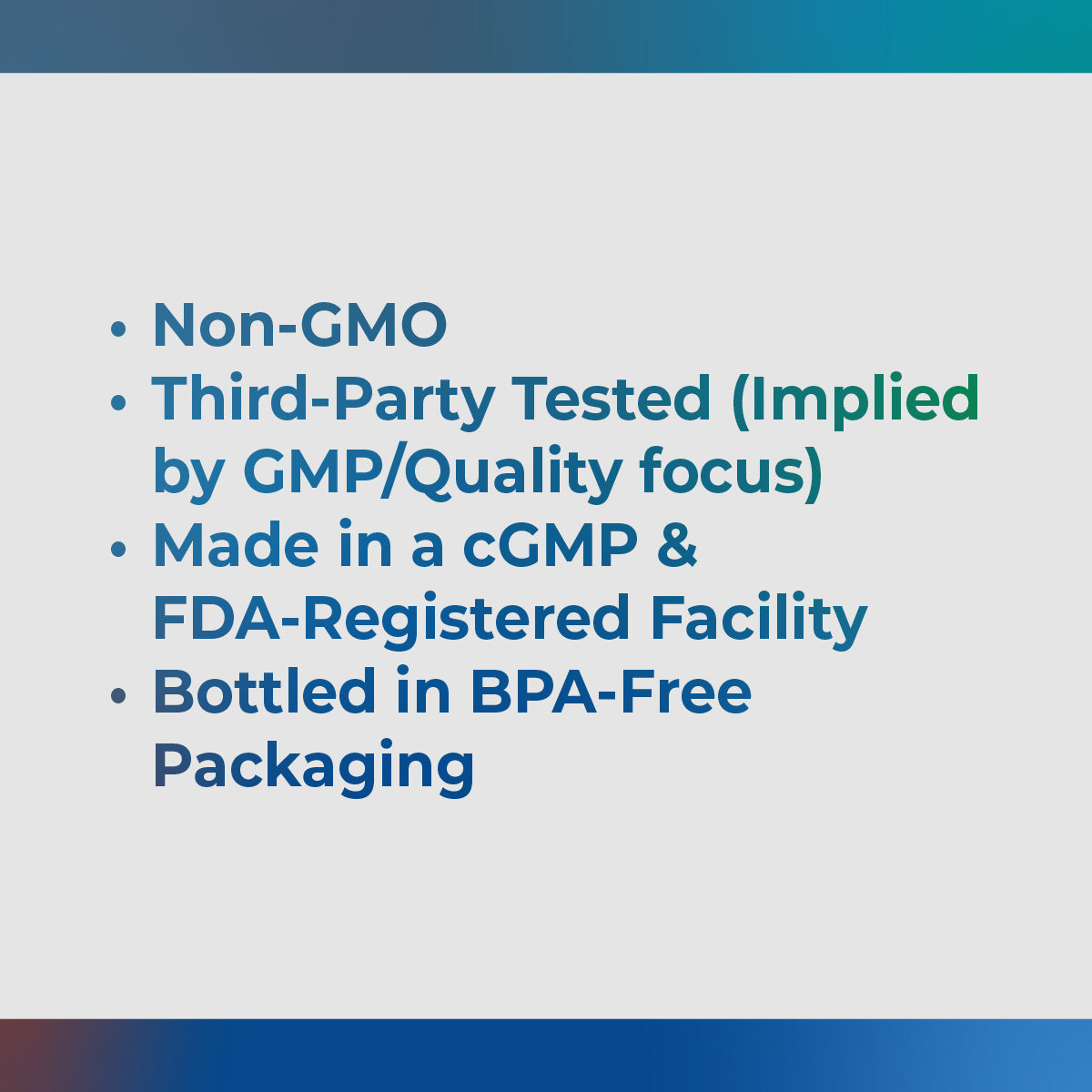 Other Ingredients: Dicalcium Phosphate (binder), vegetable stearic acid, vegetable magnesium stearate (lubricants), pharmaceutical glaze (coating), silicon dioxide (anti-caking agent), and croscarmellose sodium (disintegrant).