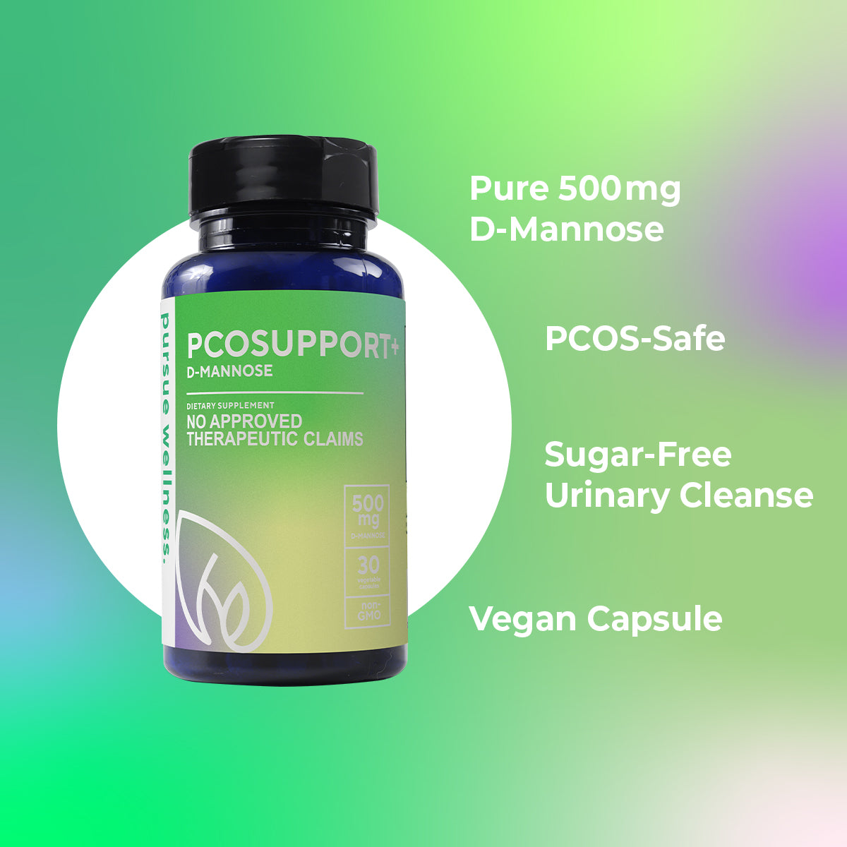 Pursue Wellness PCOSUPPORT+ – 500 mg D‑Mannose for Urinary Flush & PCOS-Friendly Gut Support – Vegan, Non-GMO, Made in USA – 30 Capsules
