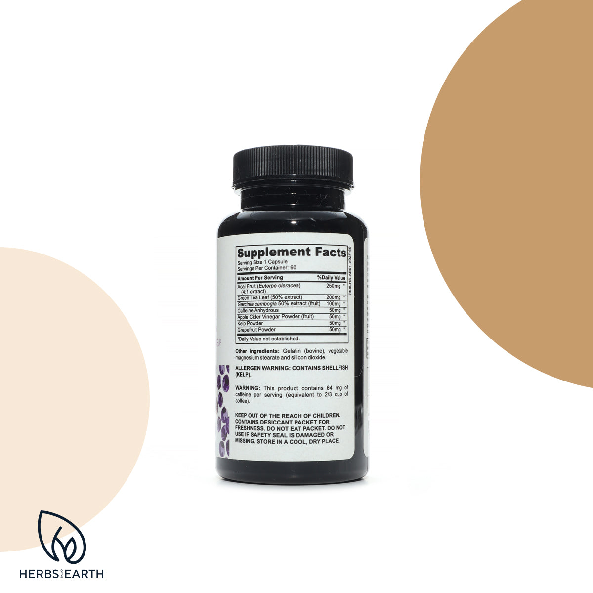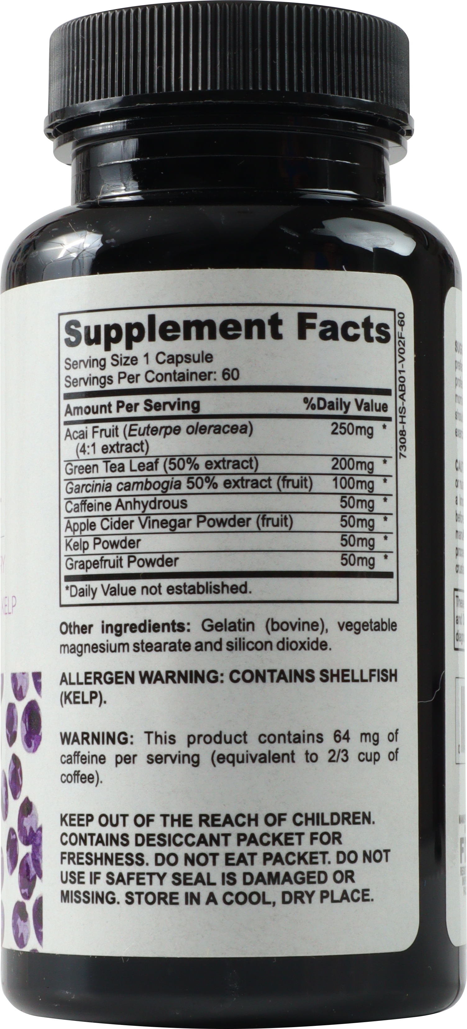• 7 POTENT INGREDIENTS - Garcinia Cambogia, Green Tea, Acai, Apple Cider, Kelp, Grapefruit & Caffeine Anhydrous.