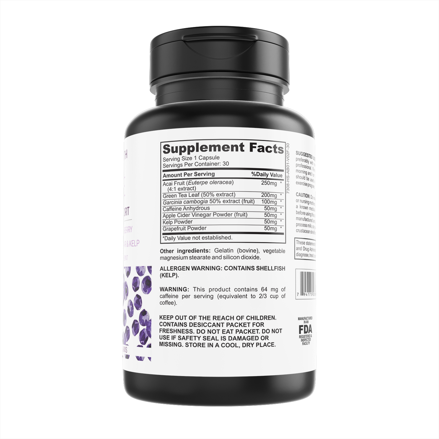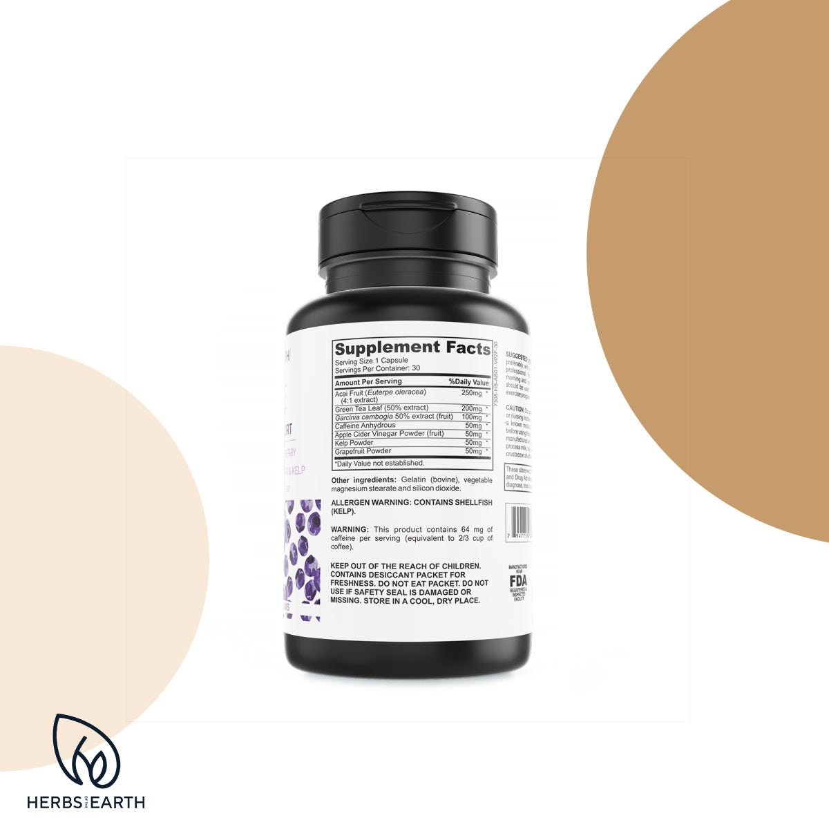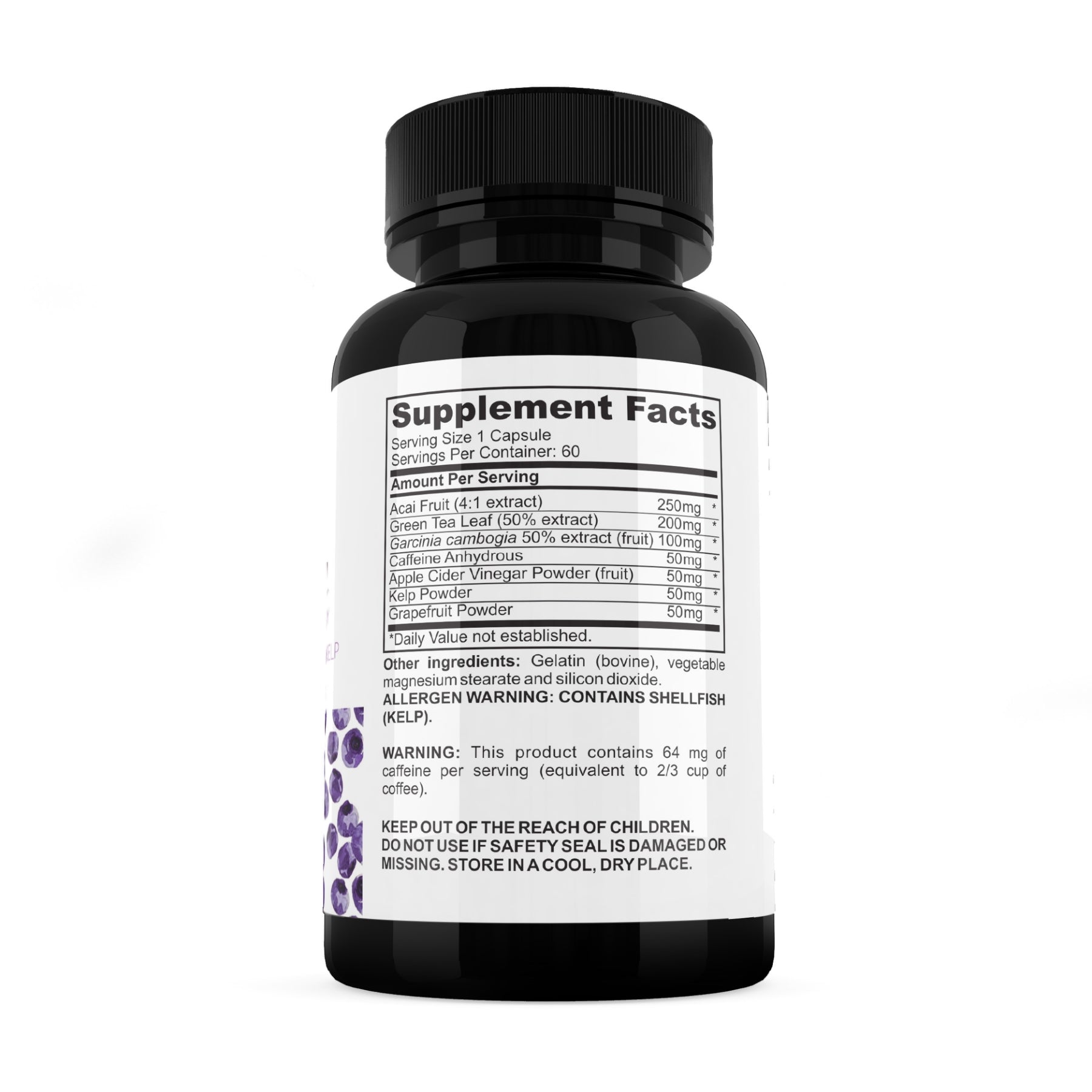 - 7 POTENT INGREDIENTS - Garcinia Cambogia, Green Tea, Acai, Apple Cider, Kelp, Grapefruit & Caffeine Anhydrous.