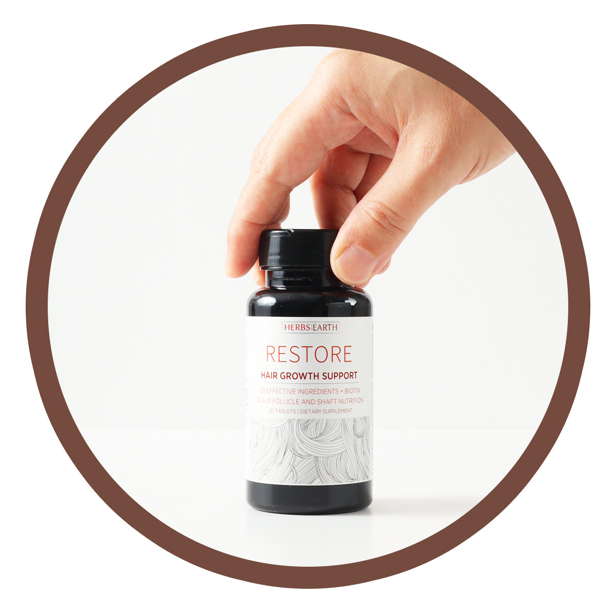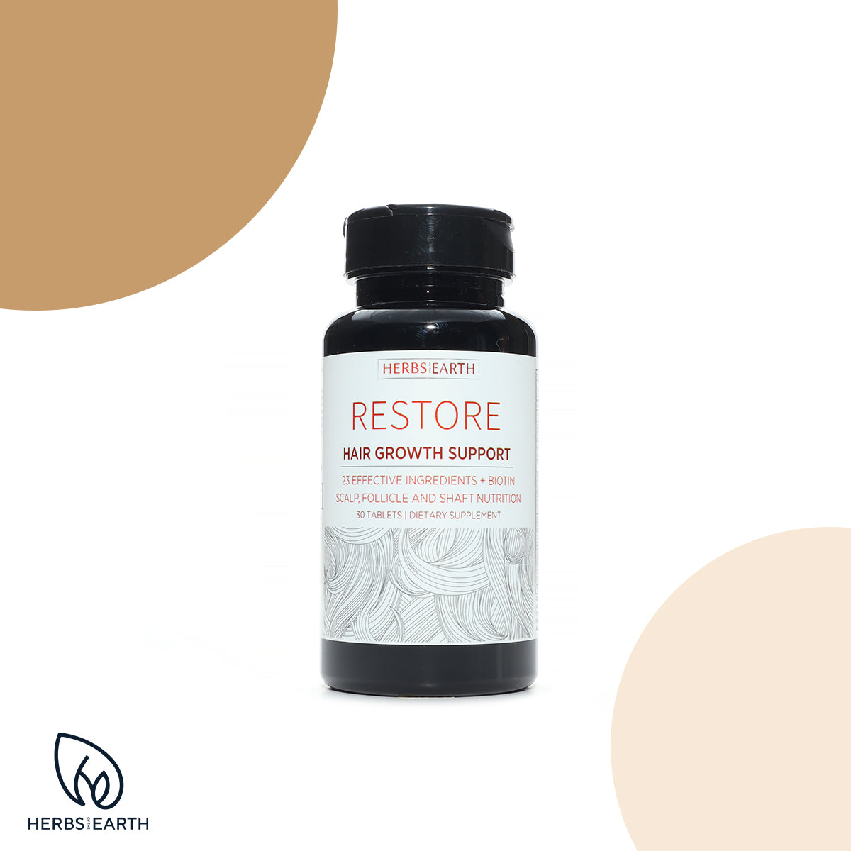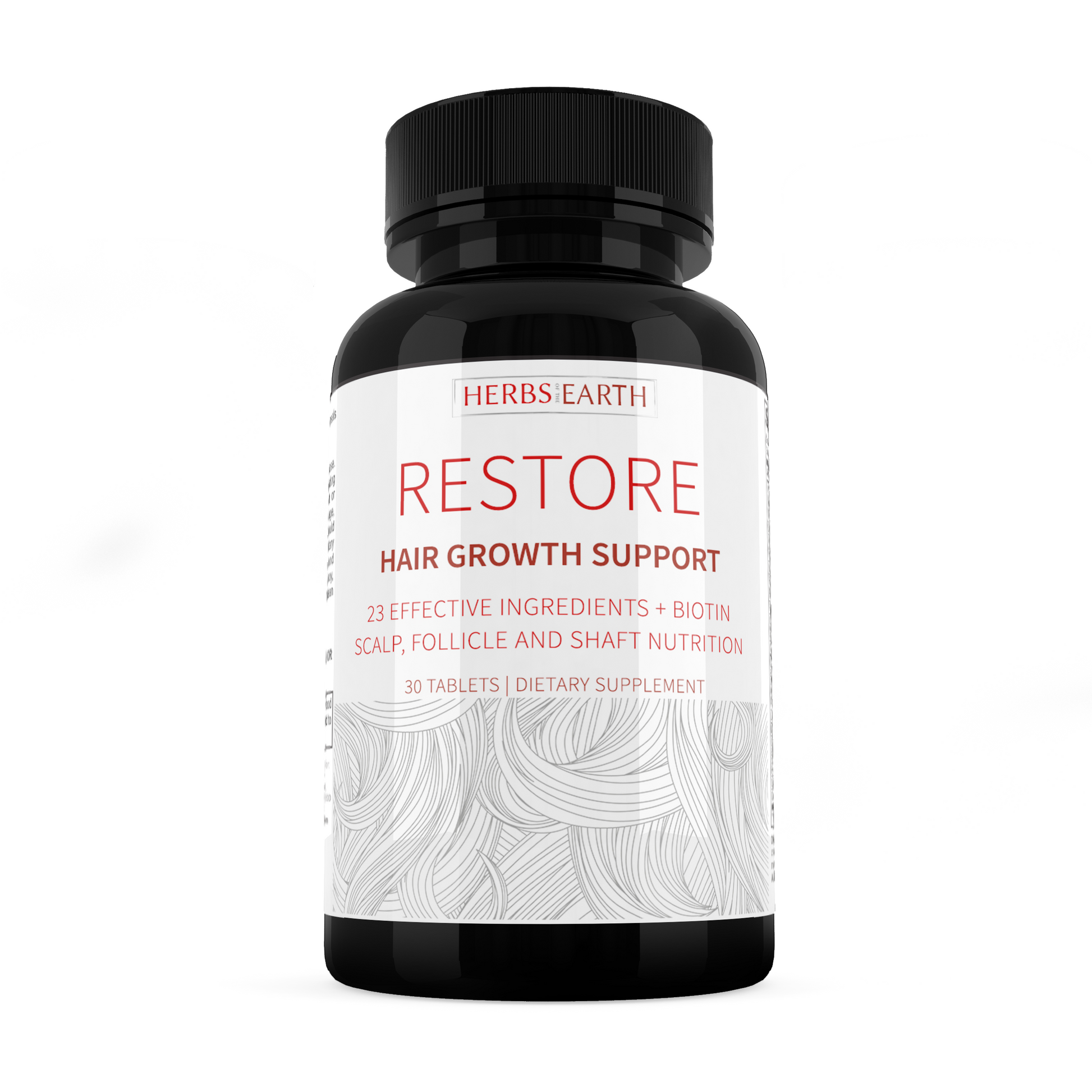 Herbs of the Earth RESTORE consists of 23 Potent essential vitamins, minerals and herbs to give your hair a boost from the inside out. RESTORE contains Biotin, Silica Bamboo, Saw Palmetto, Vit C and Inositol, which have been shown to accelerate hair growth, increase hair thickness and help decrease hair loss.