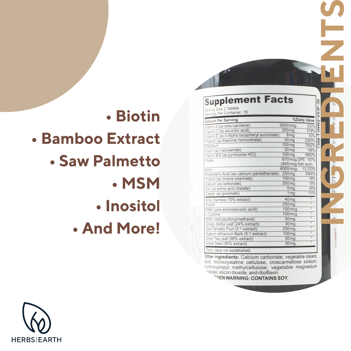 Proprietary technology featuring Biotin, Silica Bamboo, Saw Palmetto, Vit C and Inositol