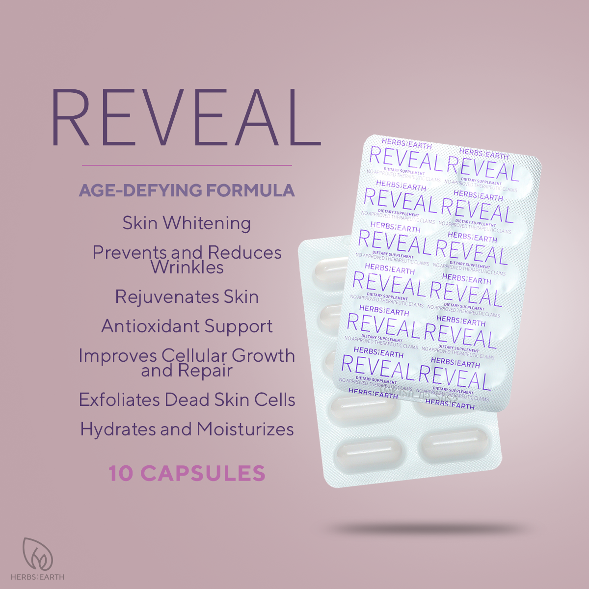 Herbs of the Earth REVEAL improves the structural integrity of the skin in as little as few weeks to restore youthful, plump skin.