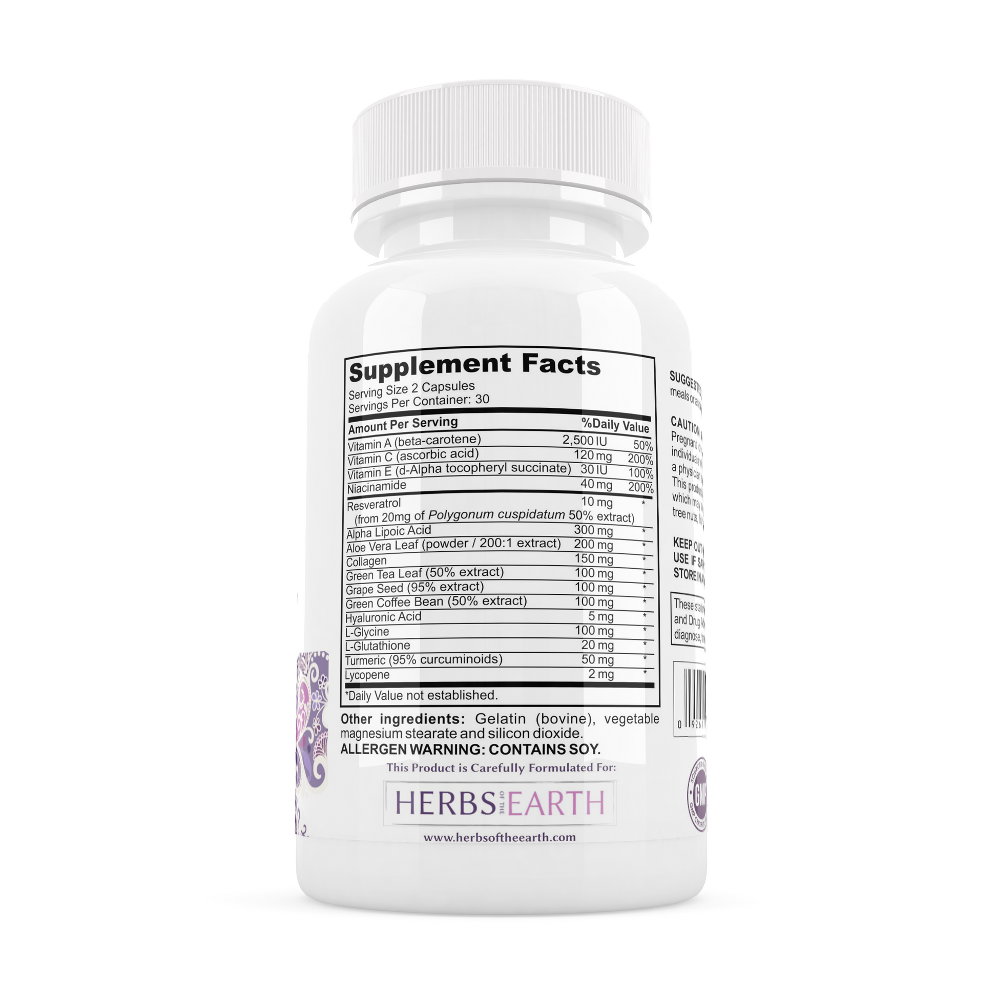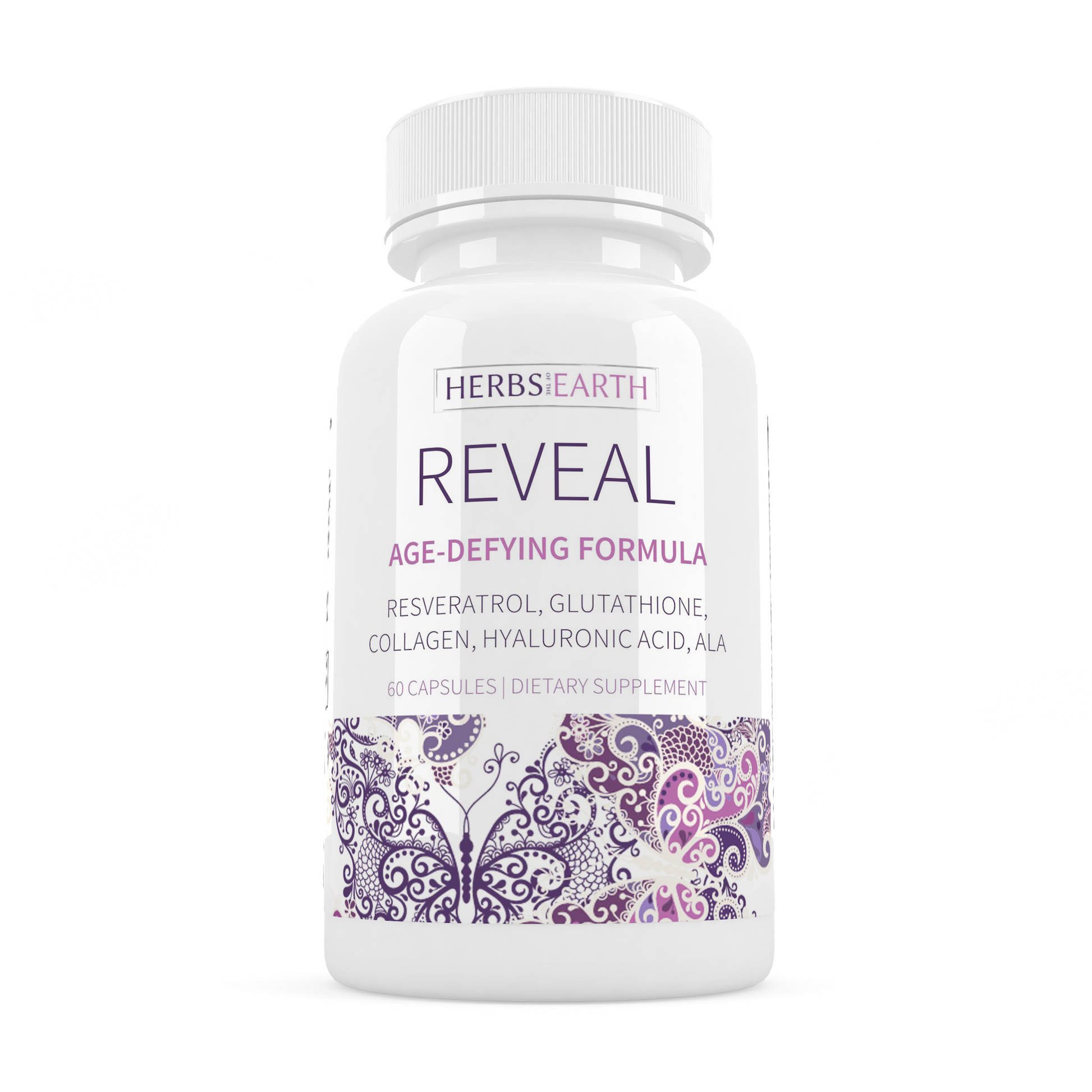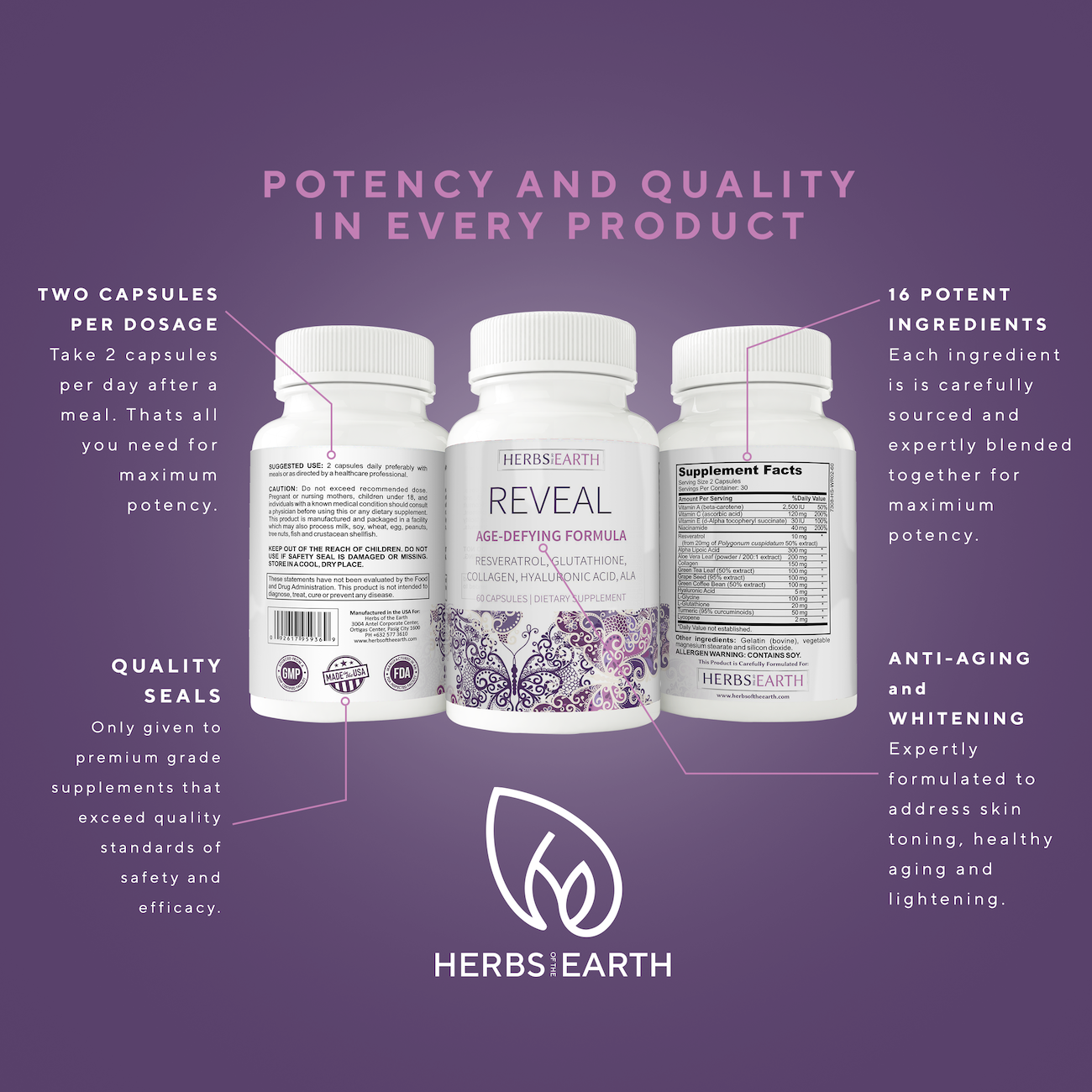 REVEAL 750mg 60 Capsules Best Anti Aging Skin Care, Glowing / Whitening, Anti Wrinkle Beauty Supplement with 16 Ingredients including Glutathione, Resveratrol, Collagen, Vitamin E, Vitamin C, ALA, and more.