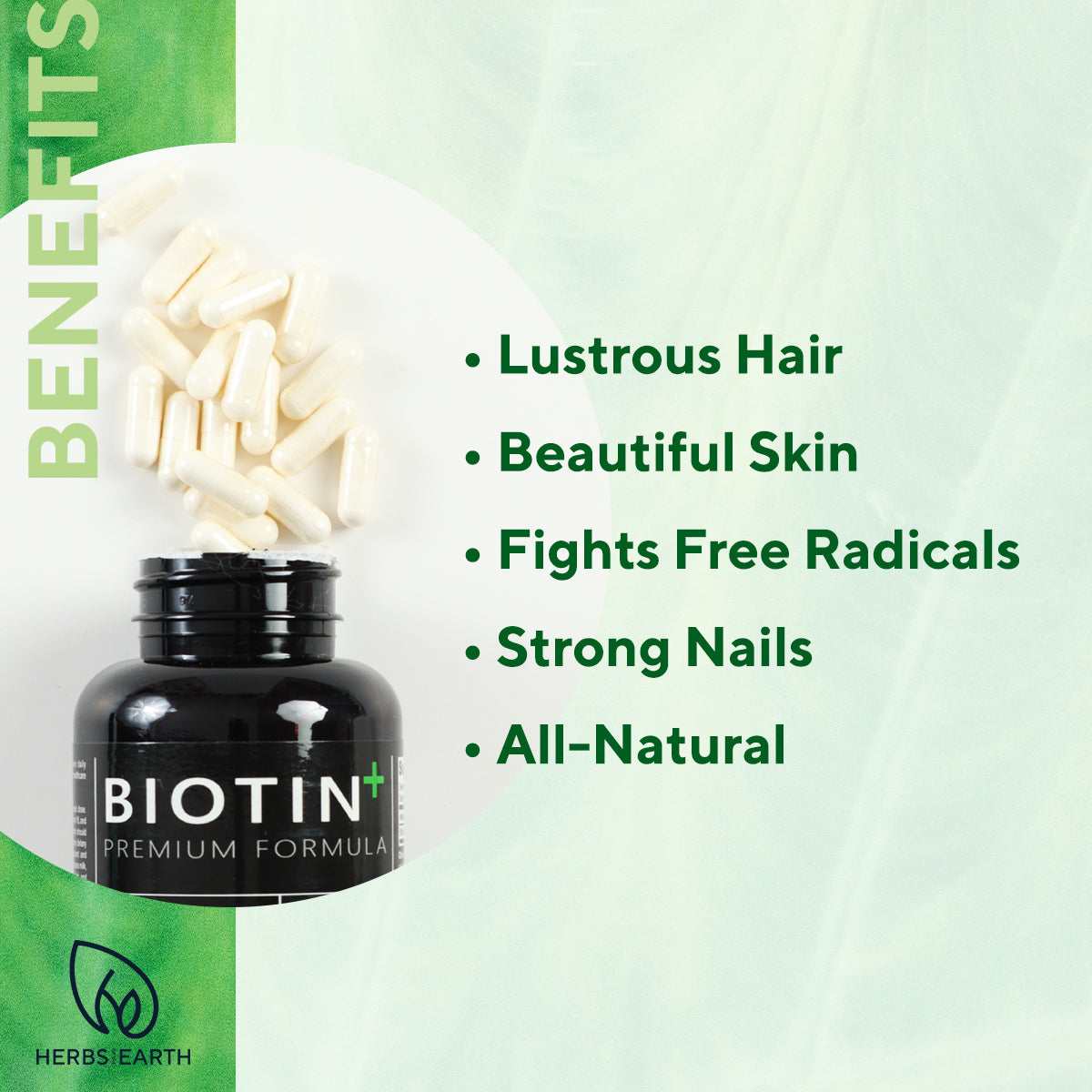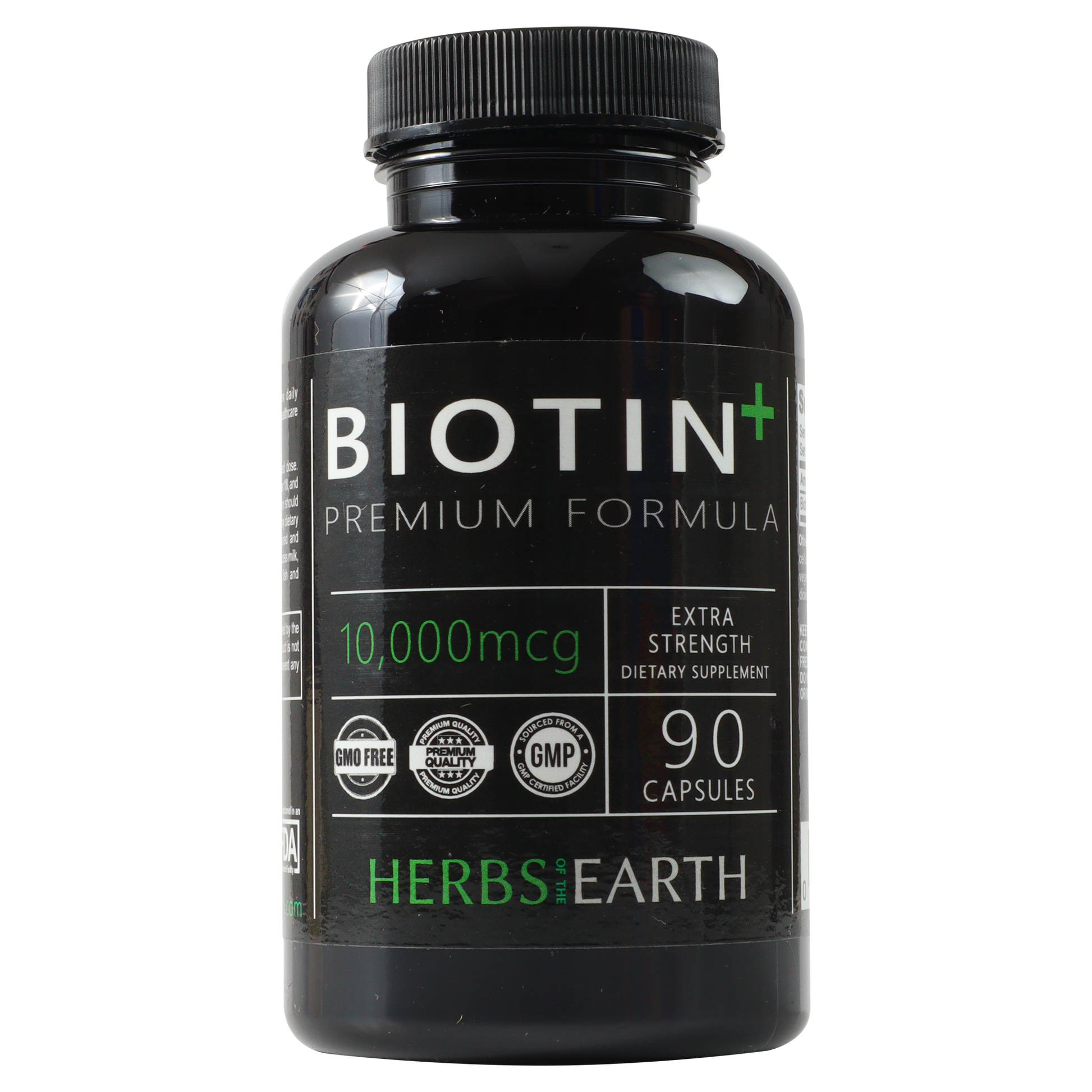 Biotin is a nutrient that helps you keep a young, attractive appearance. Its support of cellular function affects the health of hair, nails and skin. Once-daily Herbs of the Earth Biotin 10,000 mcg Extra Strength Supplement promotes sufficient levels of vitamin B7 to keep your hair thick and lustrous, give you stronger nails, and deter the drying and cracking of skin. It may also help in the nerve-signaling processes that defend against cognitive impairment. Because it facilitates the activity of insulin, Biotin 10,000 mcg Extra Strength Supplement may support healthy blood sugar levels already within a normal range.