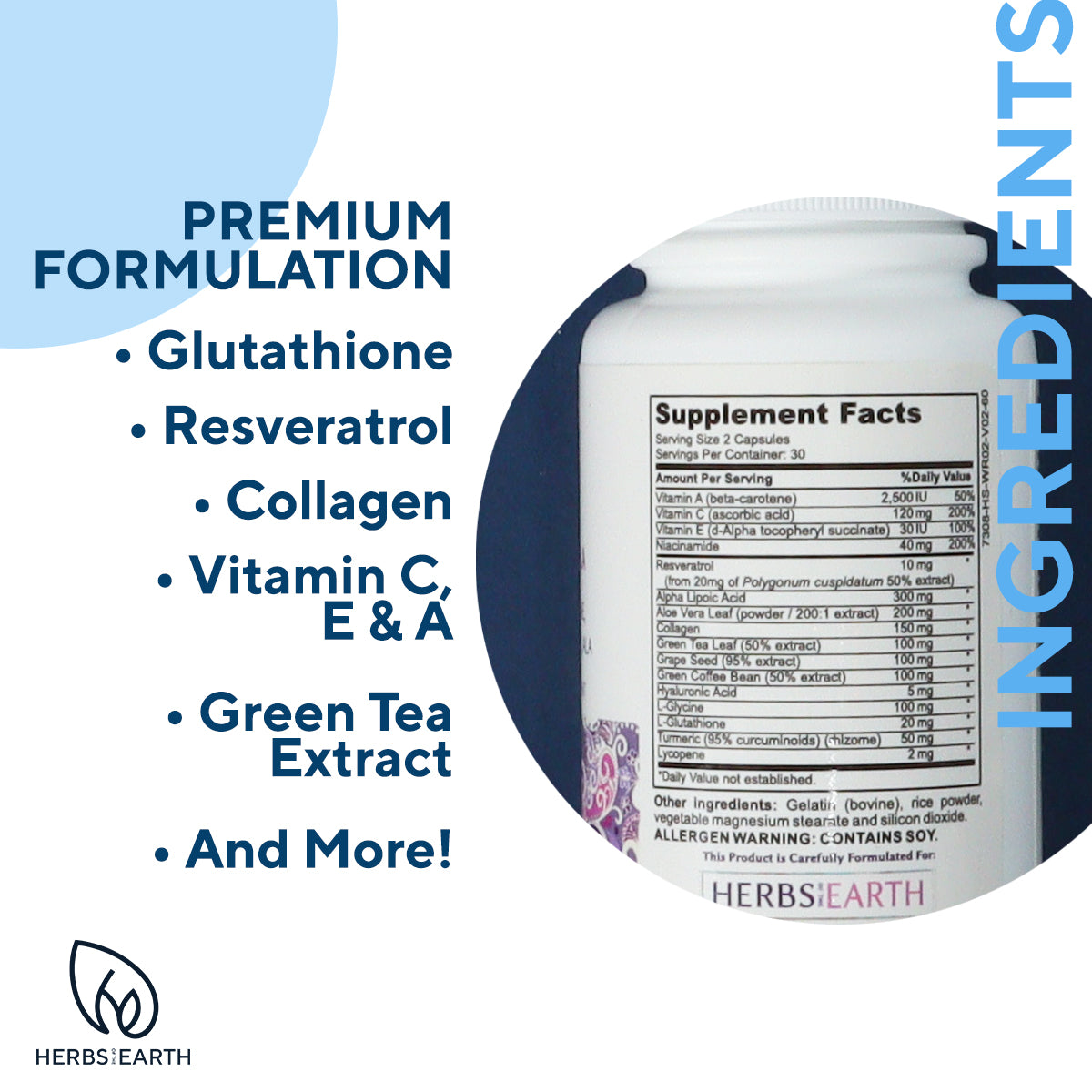 REVEAL - - Best Anti Aging Skin Care, Glowing / Whitening, Anti Wrinkle Beauty Supplement with 16 Ingredients including Glutathione, Resveratrol, Collagen, Vitamin E, Vitamin C, ALA and more.