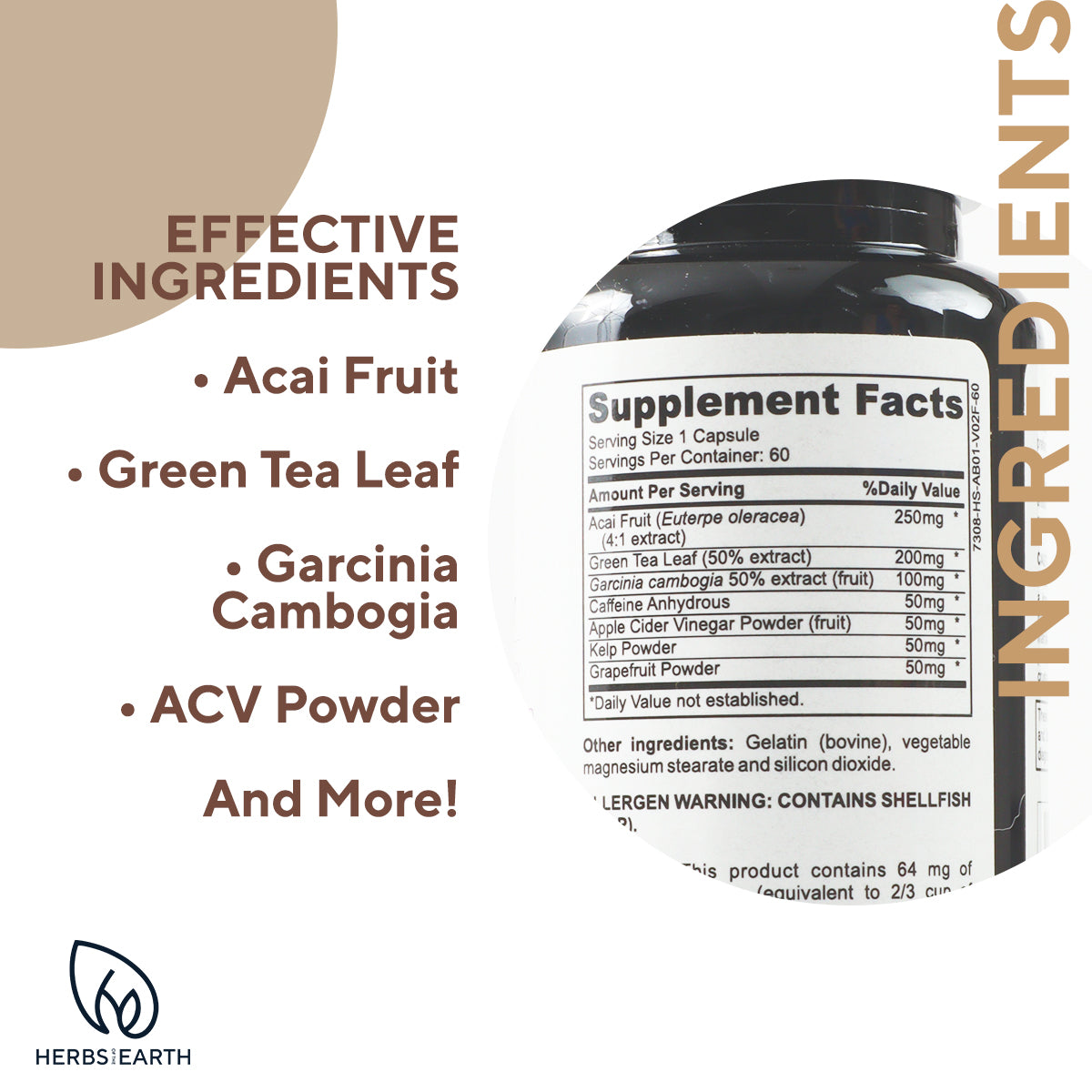 ¸7 POTENT INGREDIENTS - Garcinia Cambogia, Green Tea, Acai, Apple Cider, Kelp, Grapefruit & Caffeine Anhydrous.