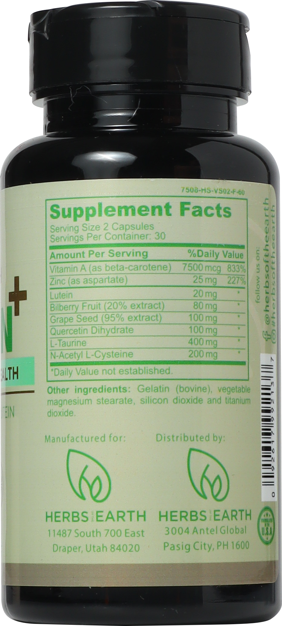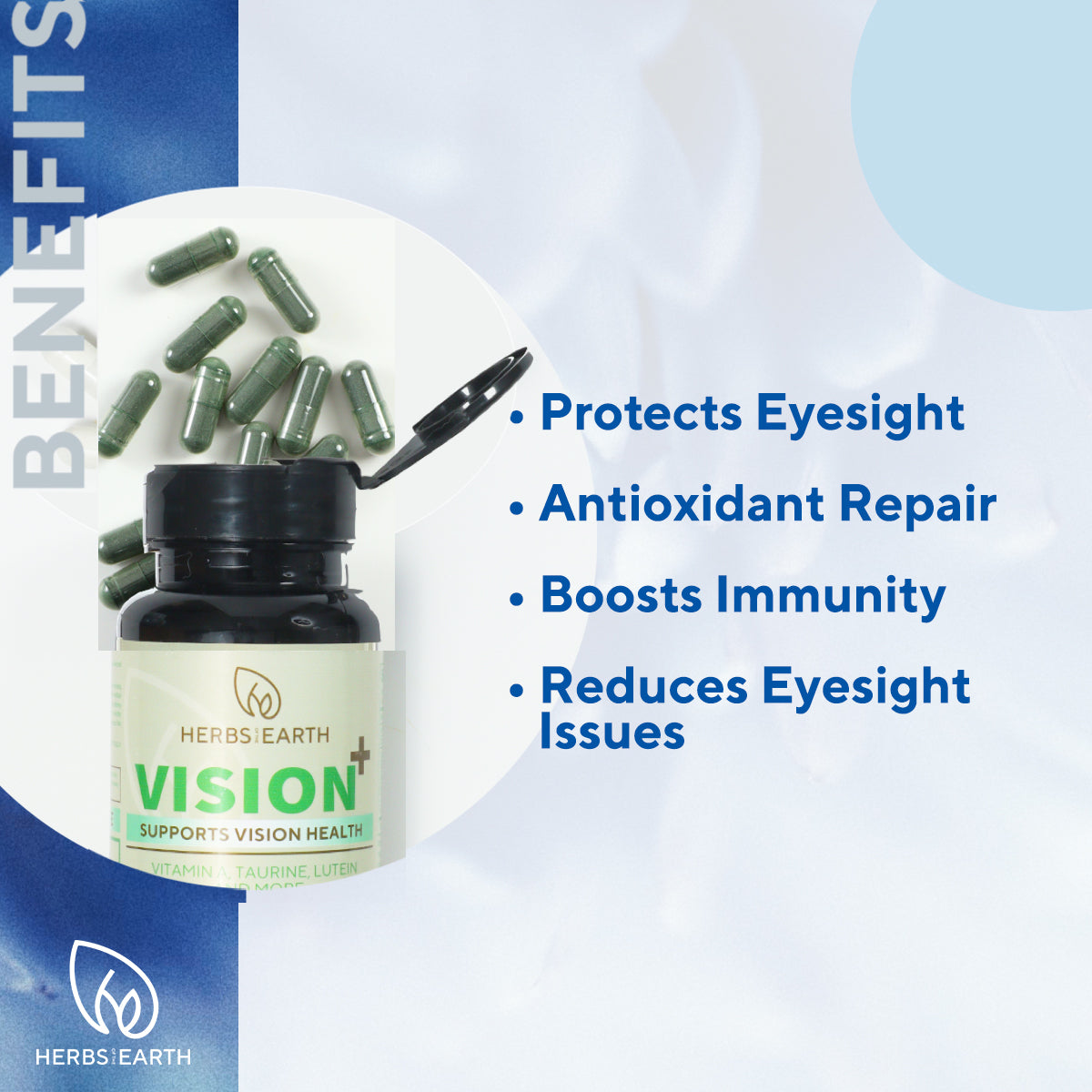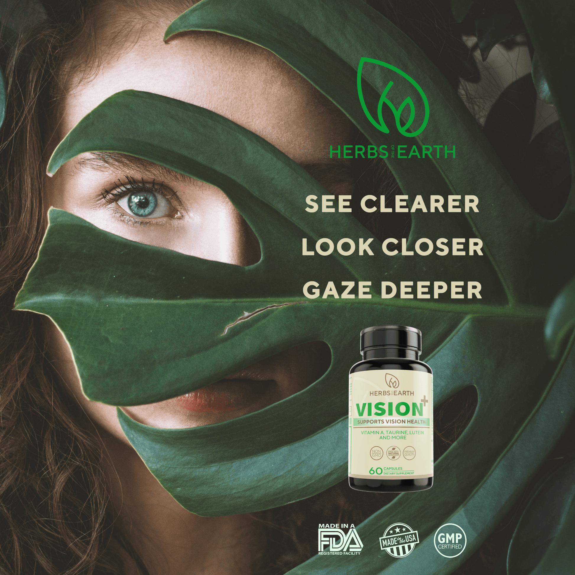 See clearly with your all-in-one eyesight health supplement VISION+ from HERBS OF THE EARTH. Its’ unique formulation helps maintain good eyesight and prevents future vision degeneration. With regular use, it helps to shield the sensitive macula from harmful environmental factors. Get clarity in a capsule.