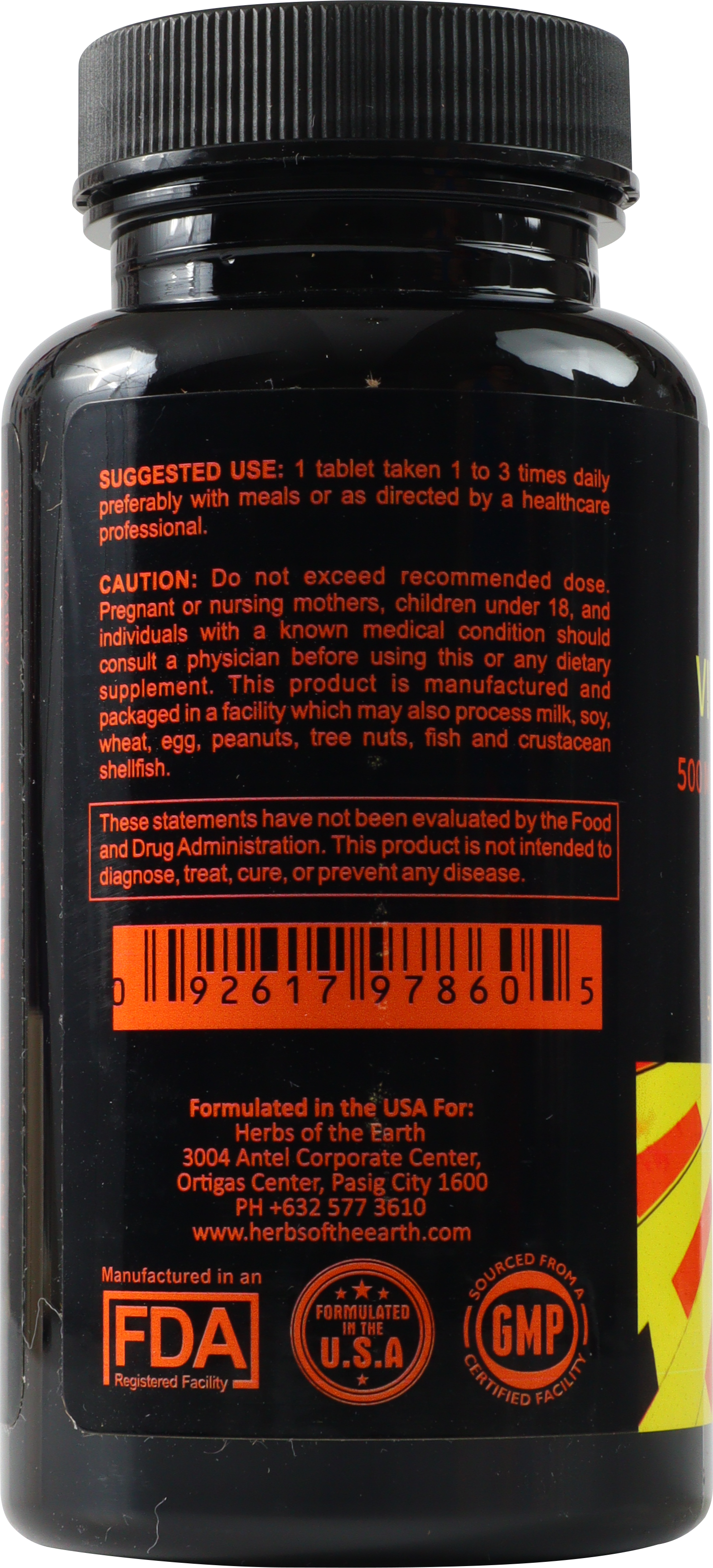 Herbs of the Earth formula contains 500 mg of vitamin C per capsule which is the amount analyzed in studies. A study conducted in the Journal of Chiropractic Medicine indicated that supplementation with 500mg of vitamin C per day showed a favorable impact on serum cholesterol levels and triglyceride concentrations.