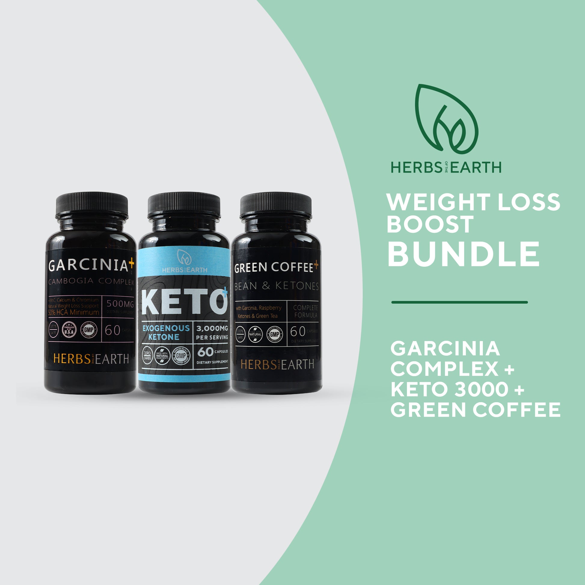 Weight Loss Boost: GARCINIA CAMBOGIA COMPLEX 500mg 60 CAPSULES + KETO 3000 750mg 60 Capsules + GREEN COFFEE KETONES 1300mg 60 Capsules from Herbs of the Earth